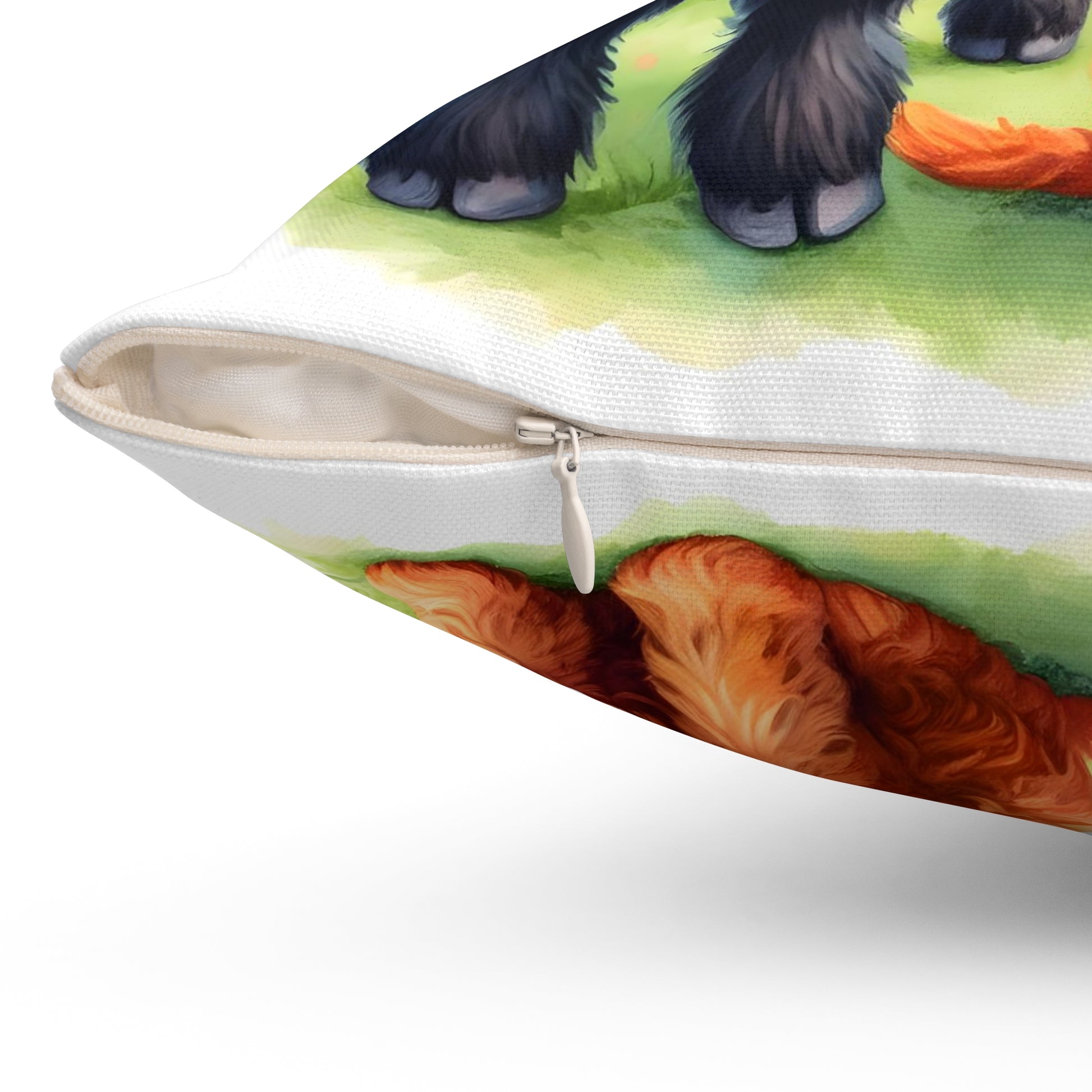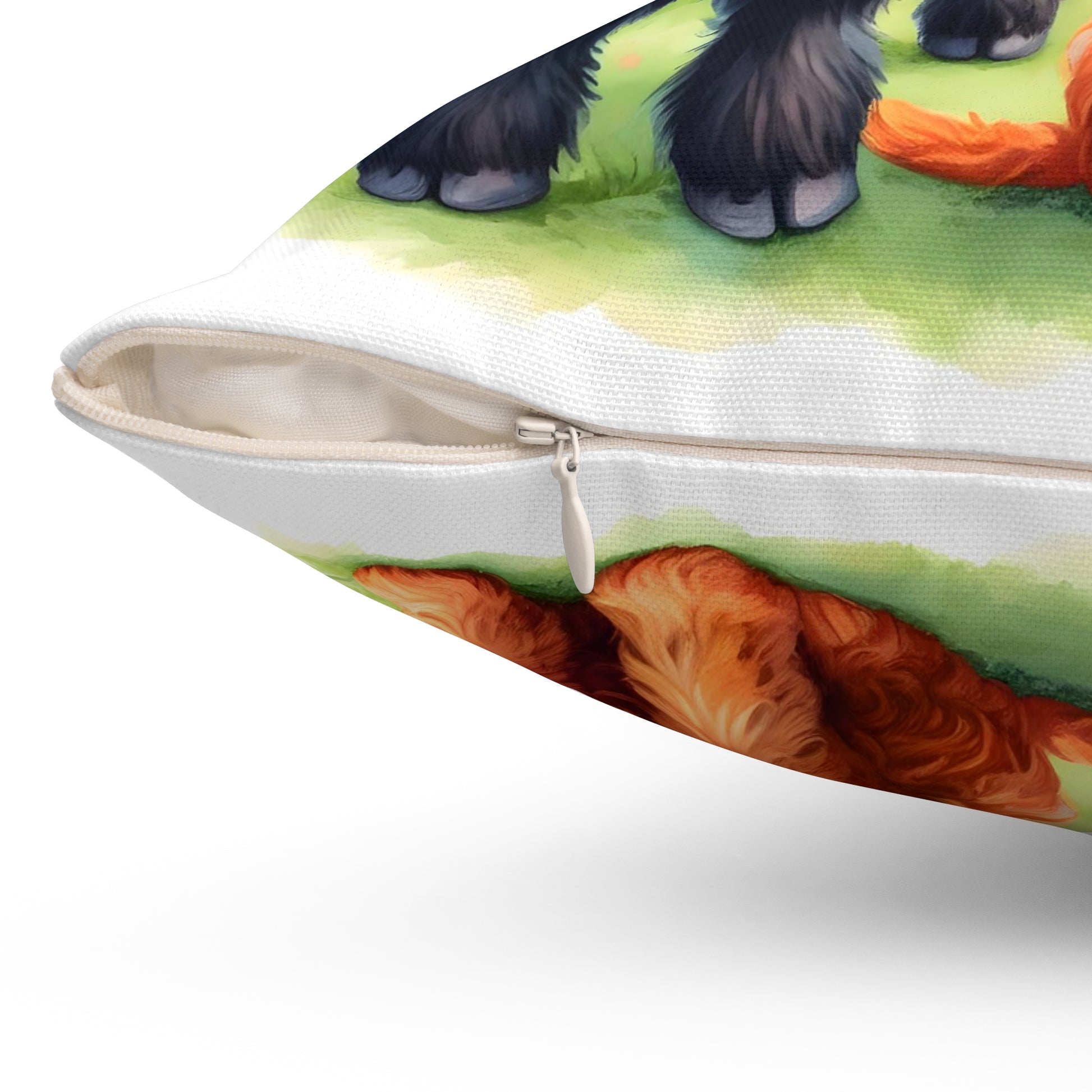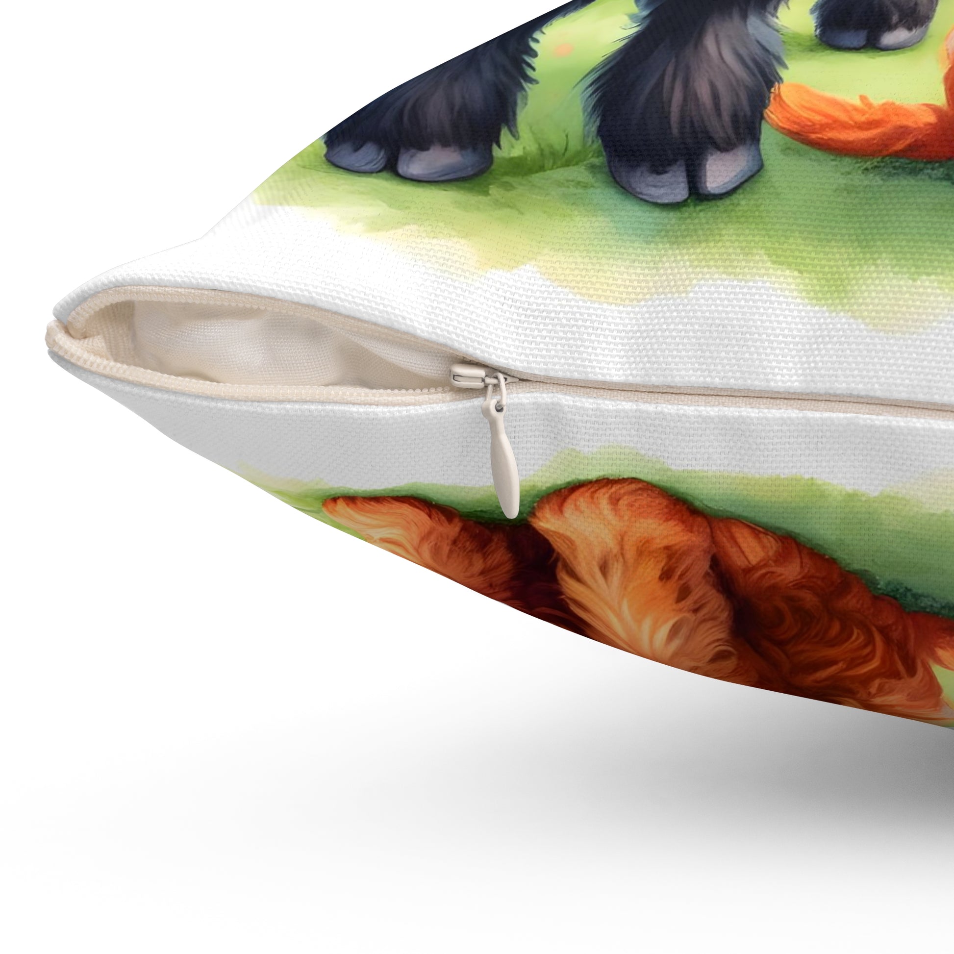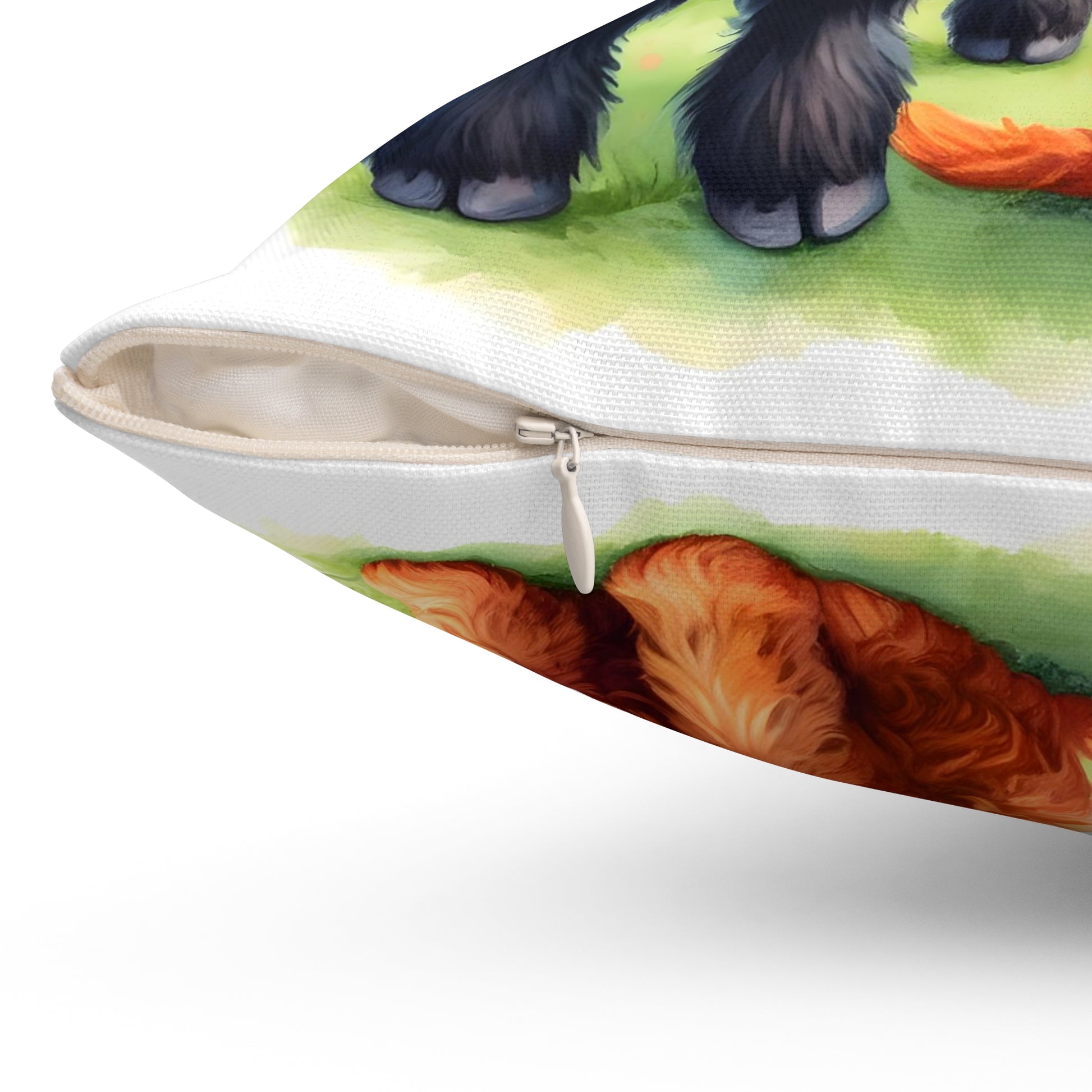 Scottish Highland Cow Doodle Spun Polyester Square Pillow