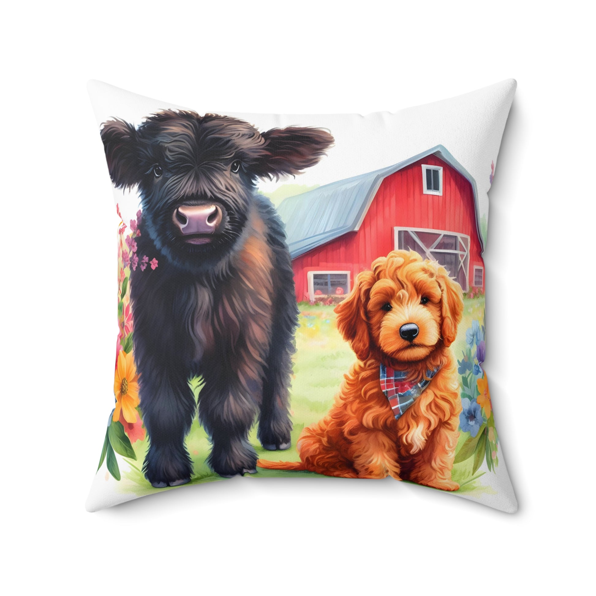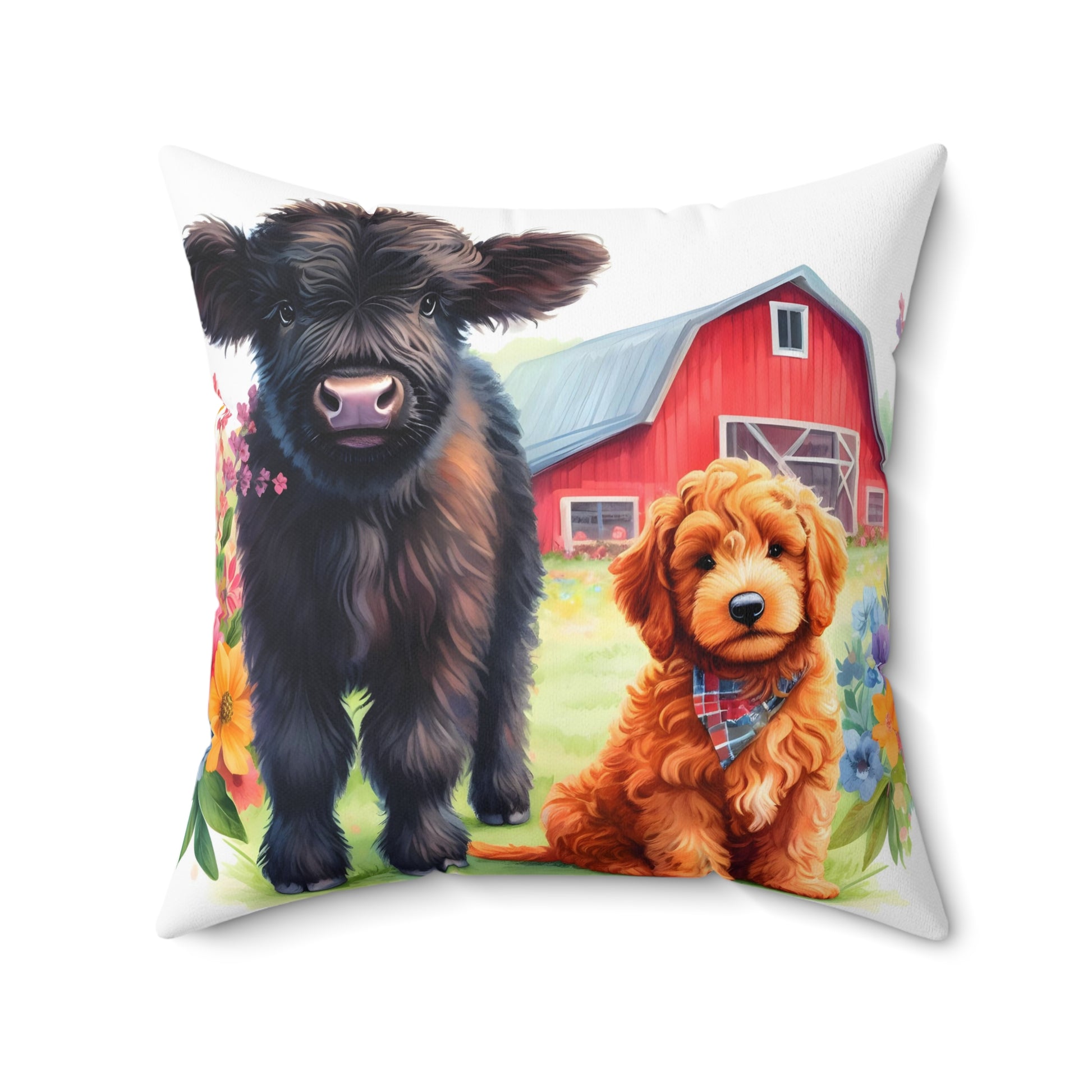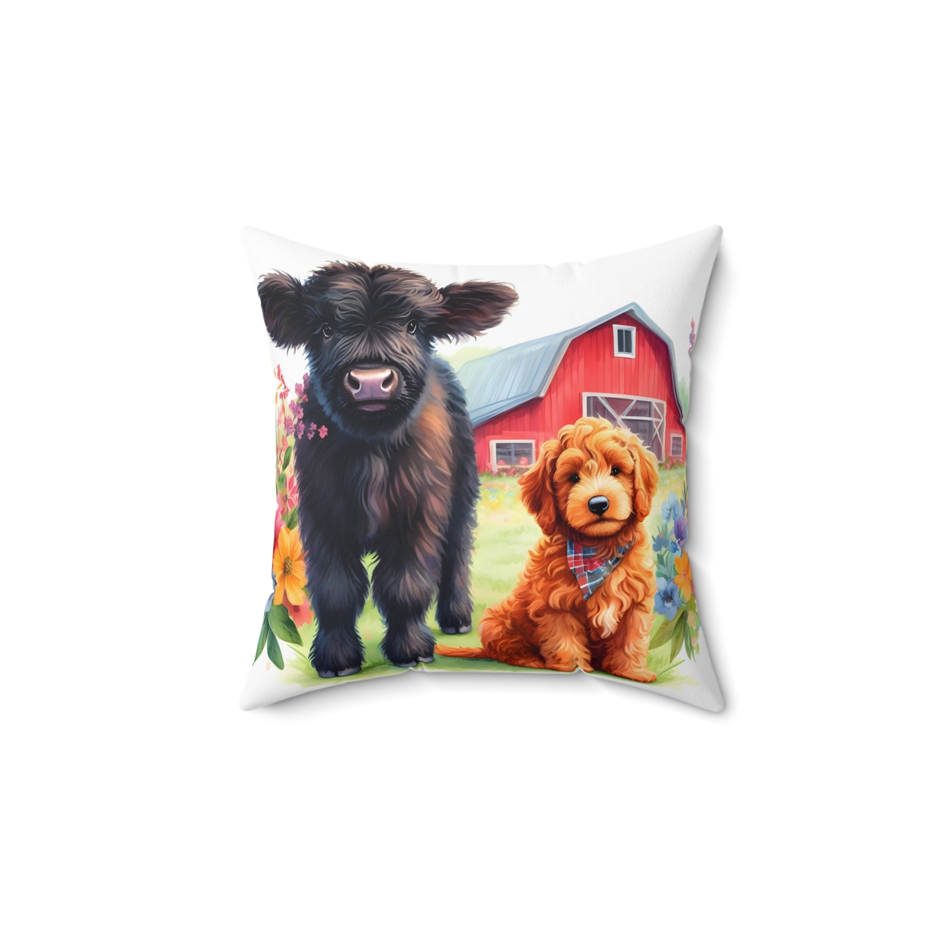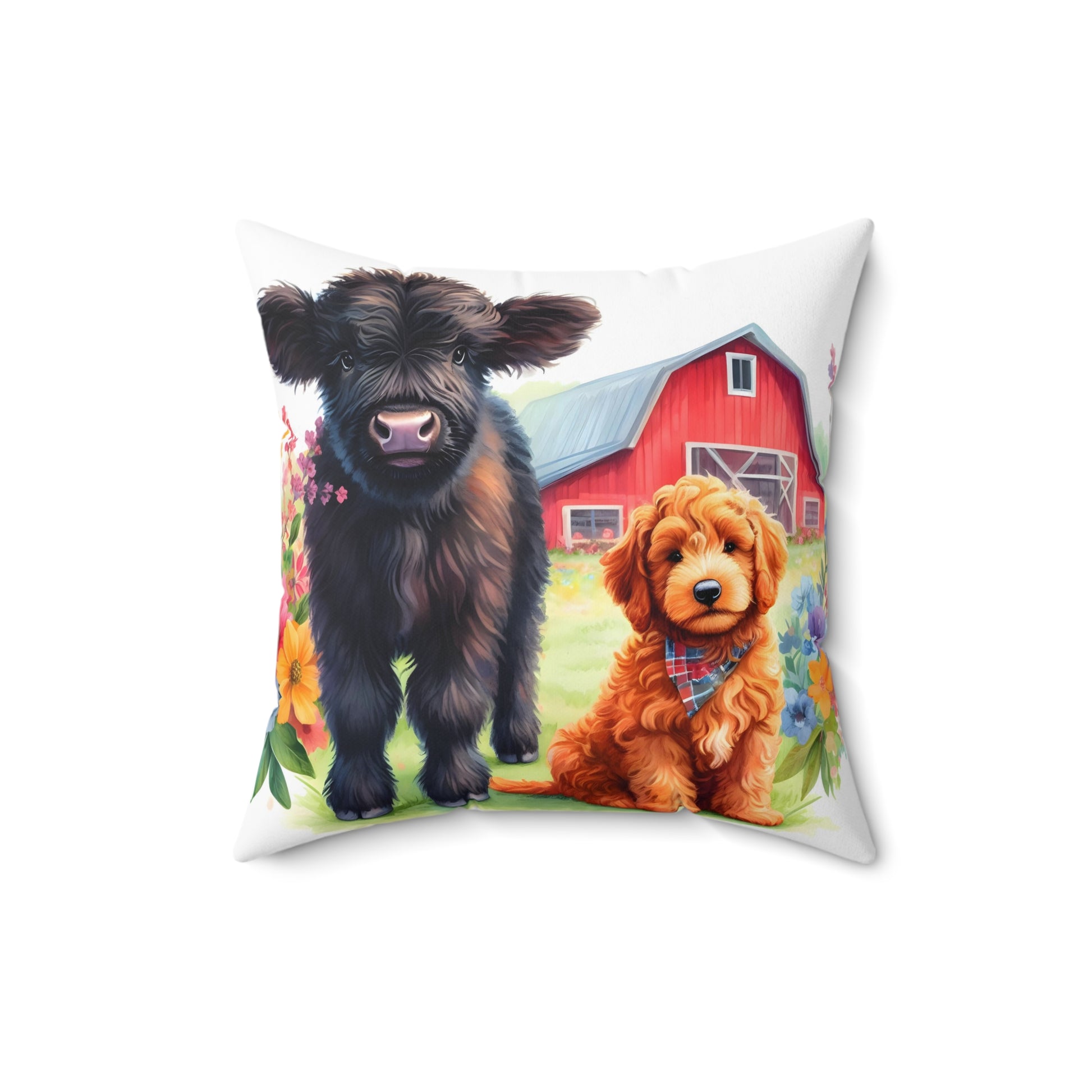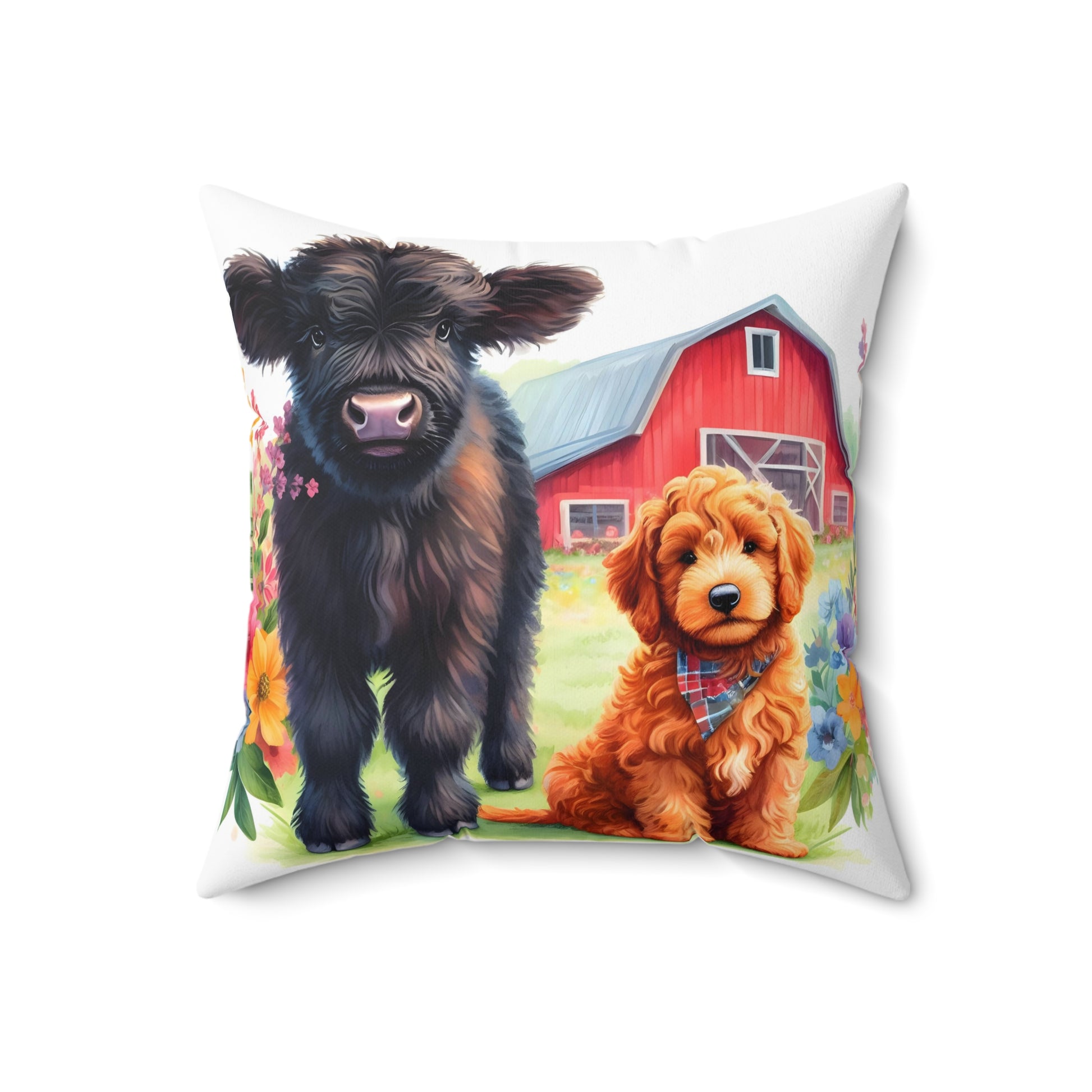 Scottish Highland Cow Doodle Spun Polyester Square Pillow