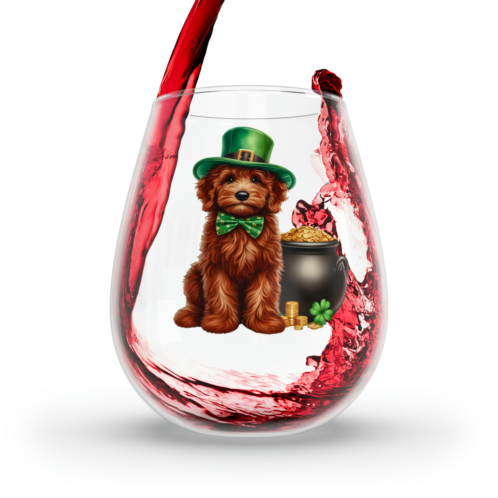 St. Patrick's Day Doodle - Stemless Wine Glass, 11.75oz