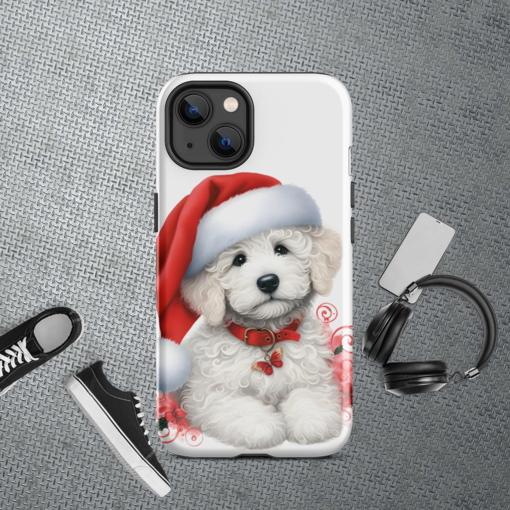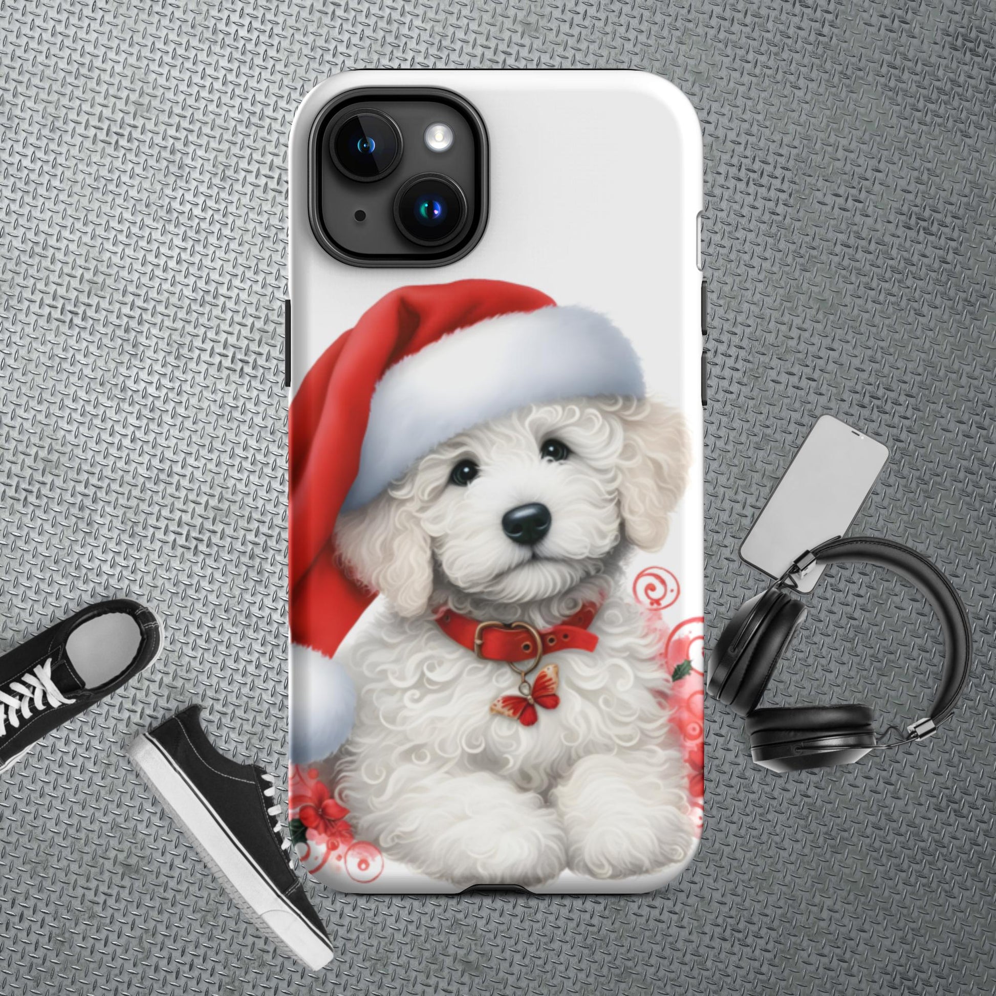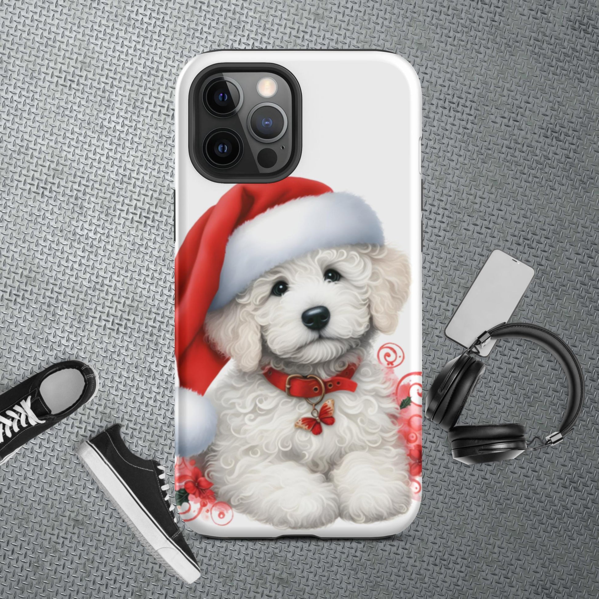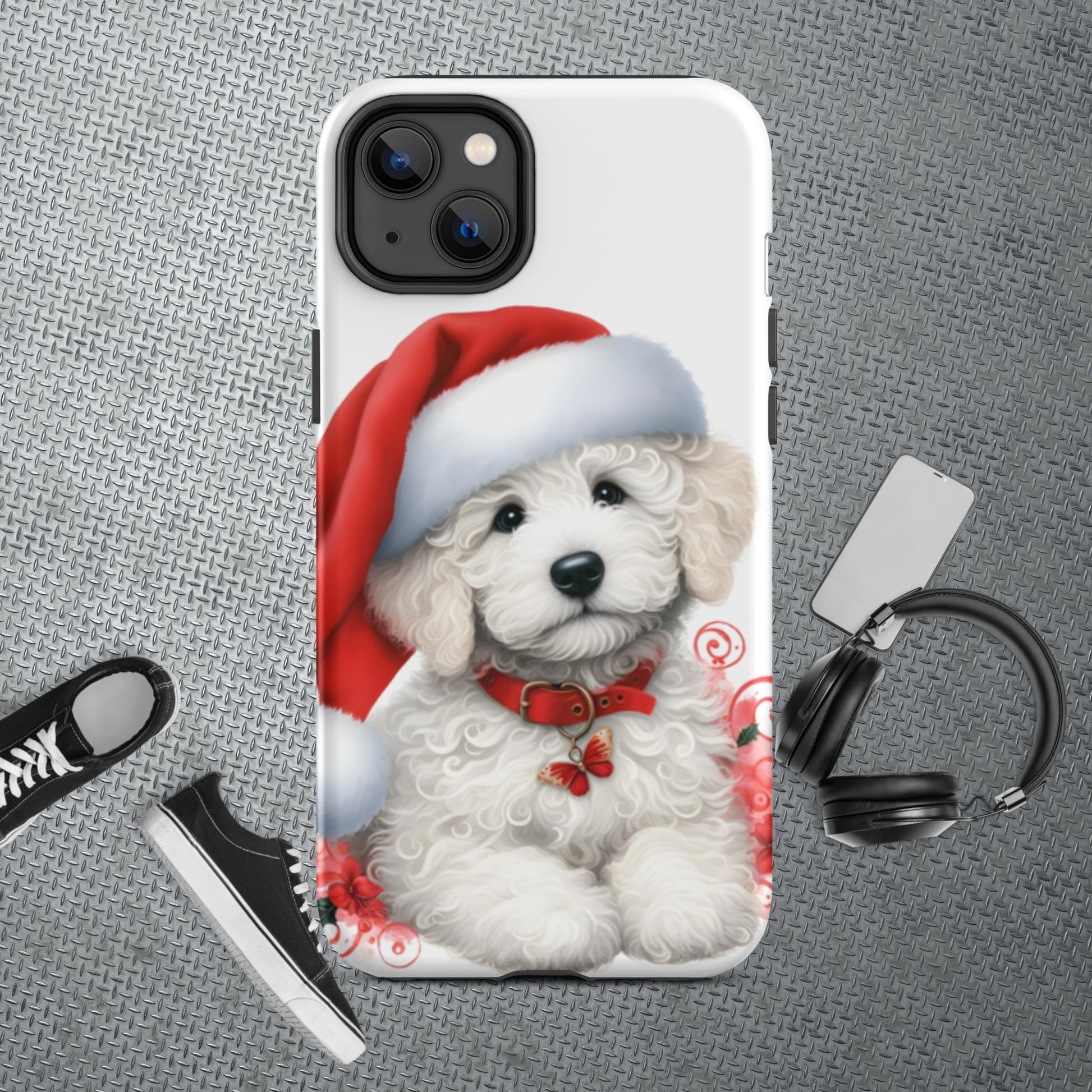 White Christmas Doodle Puppy Tough Case for iPhone®