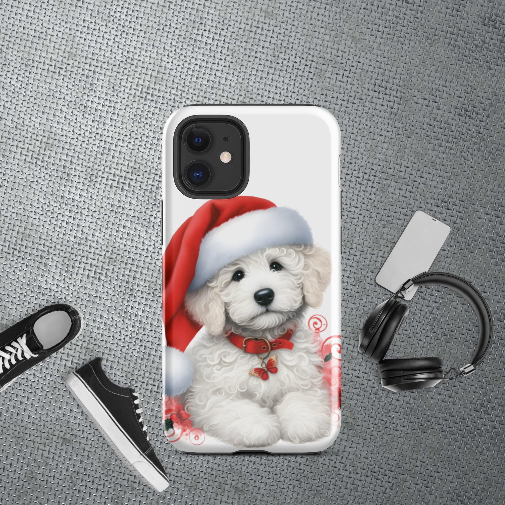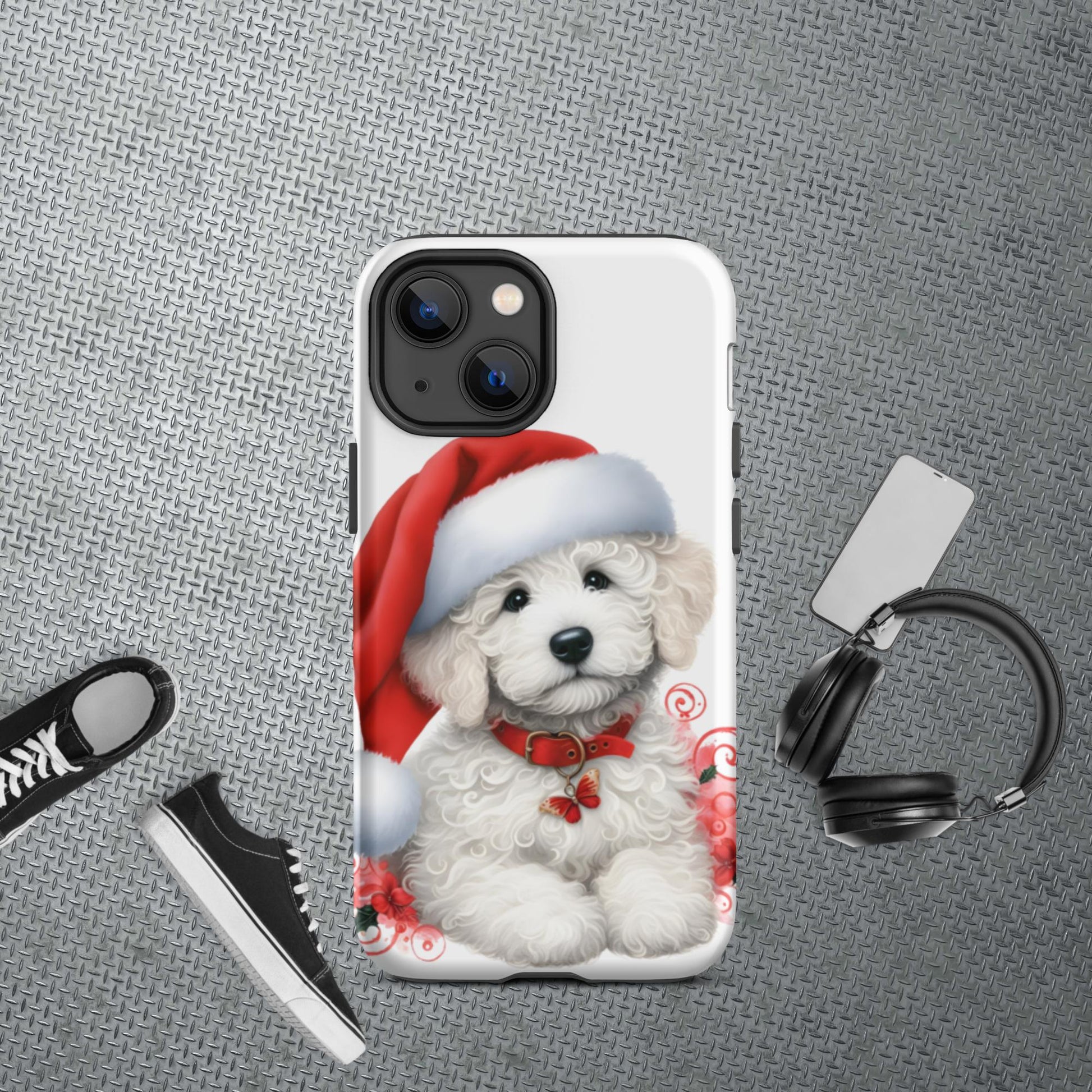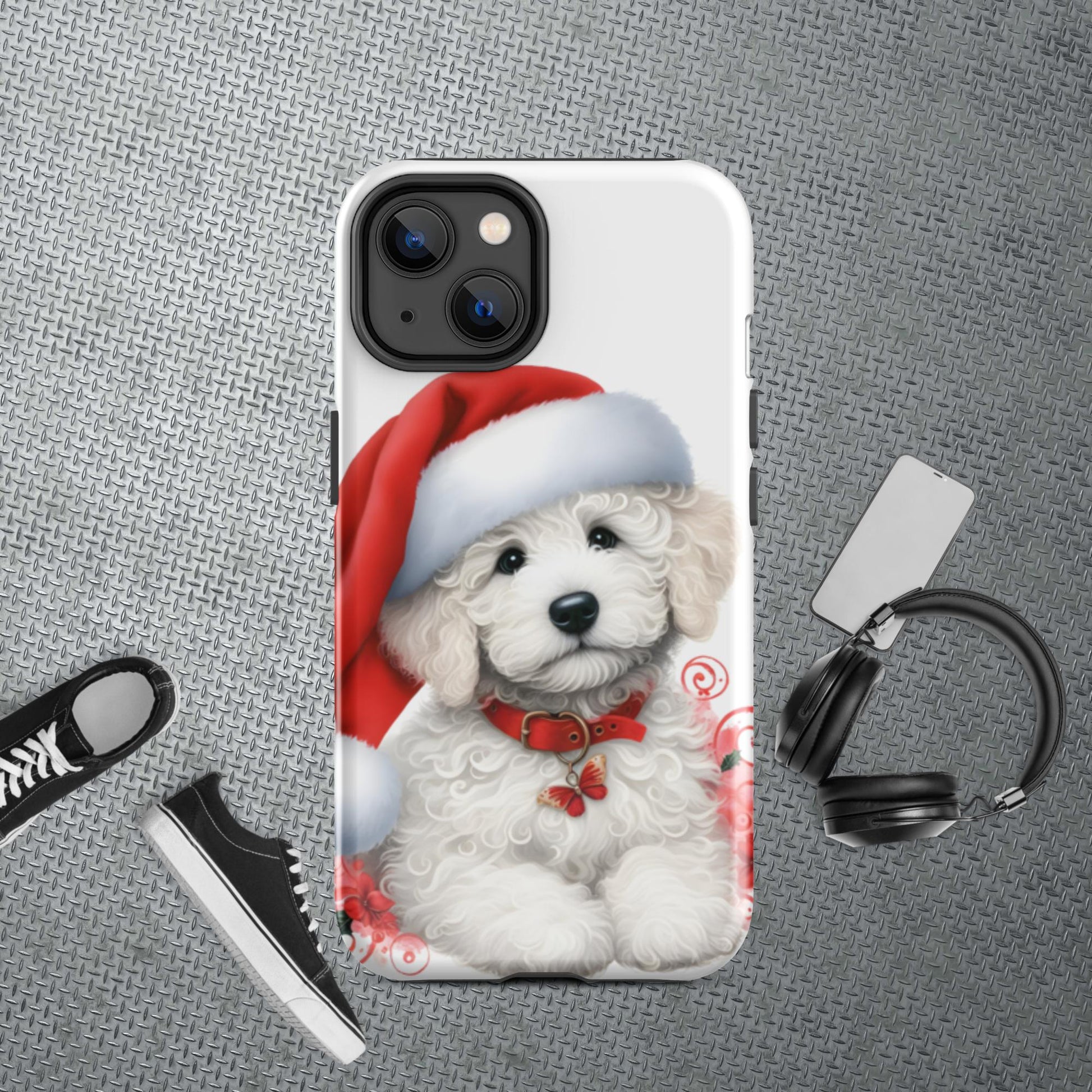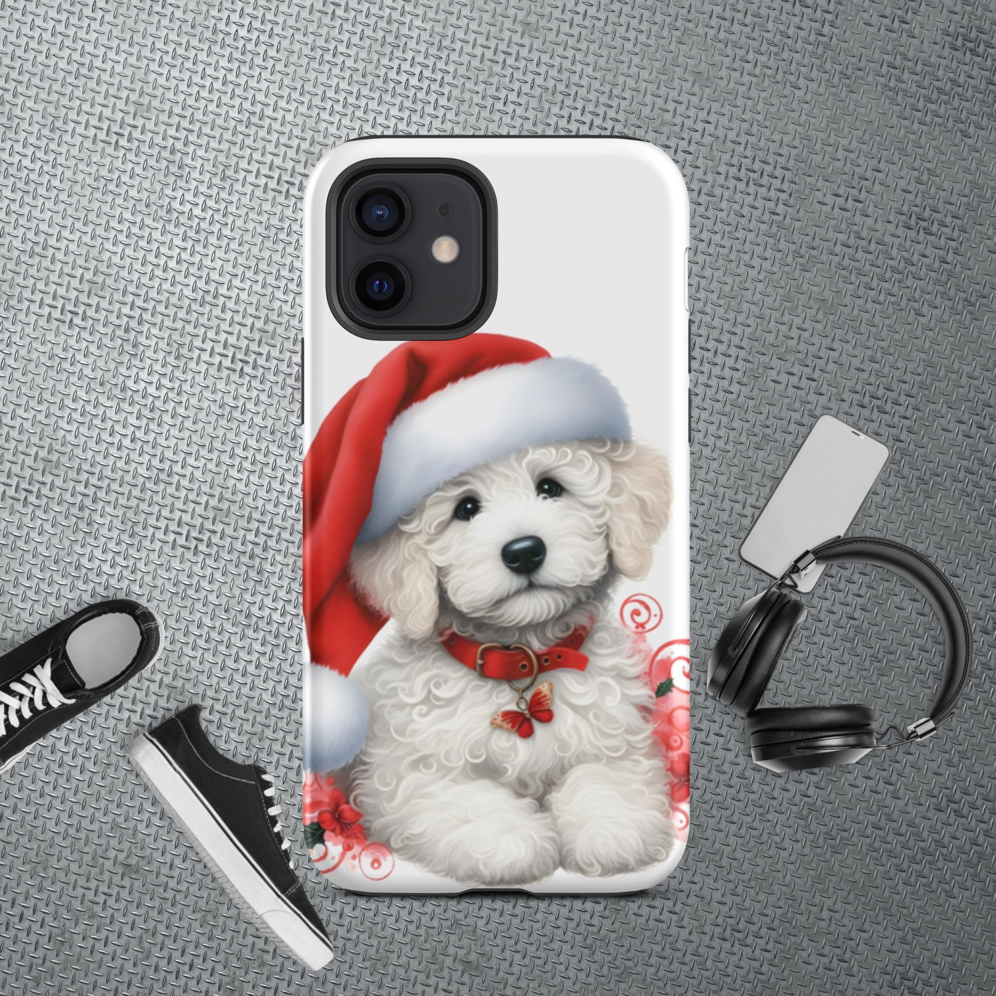 White Christmas Doodle Puppy Tough Case for iPhone®