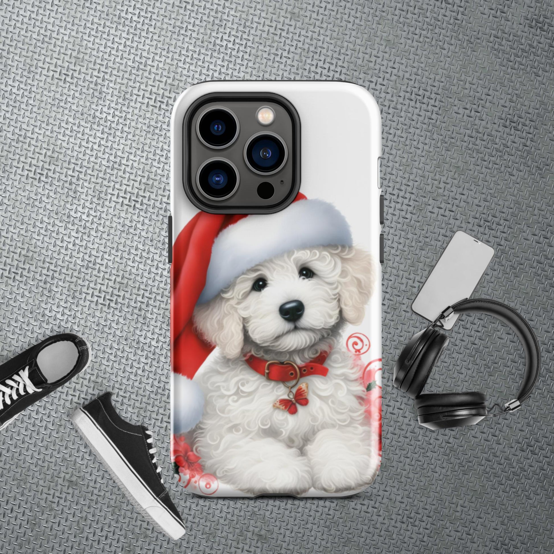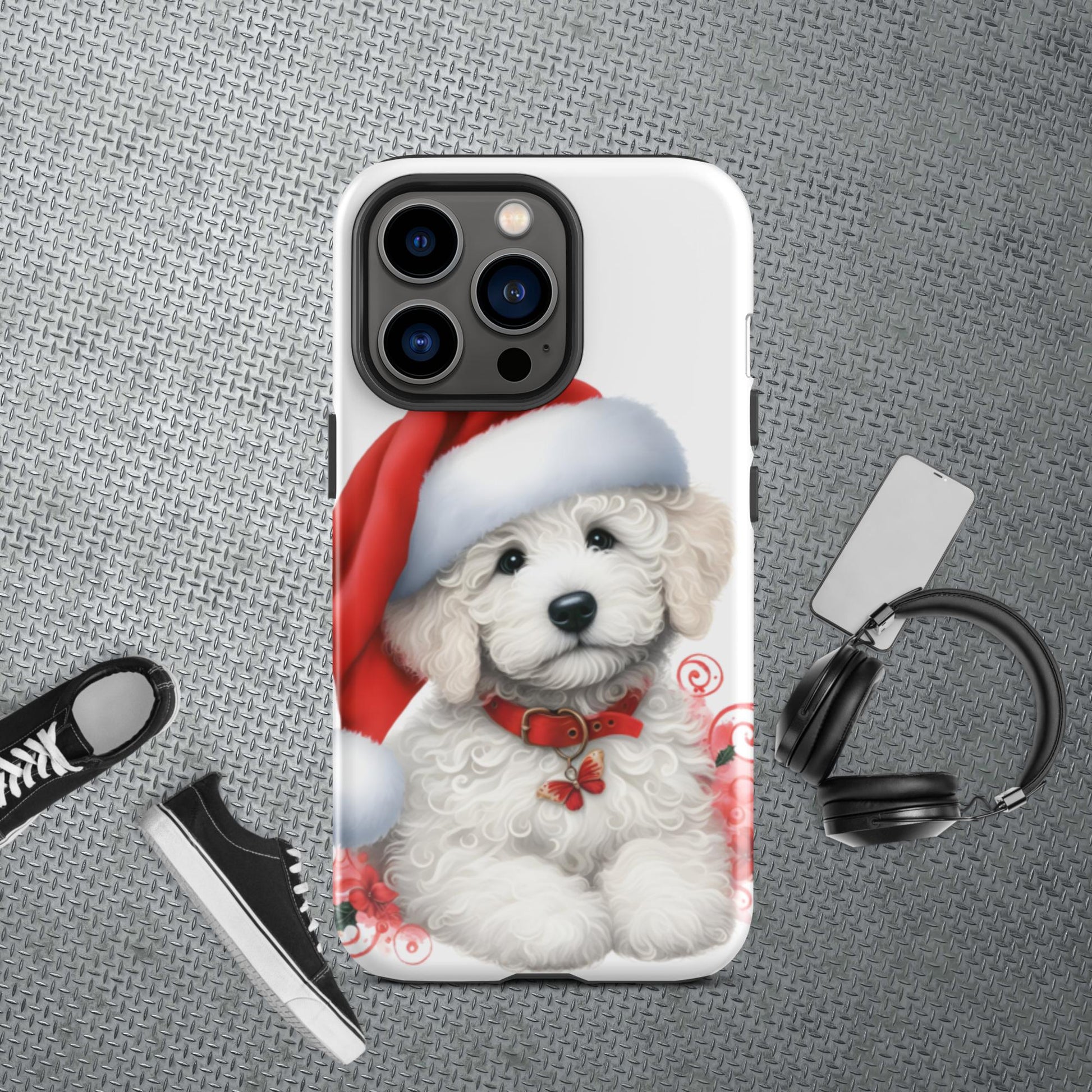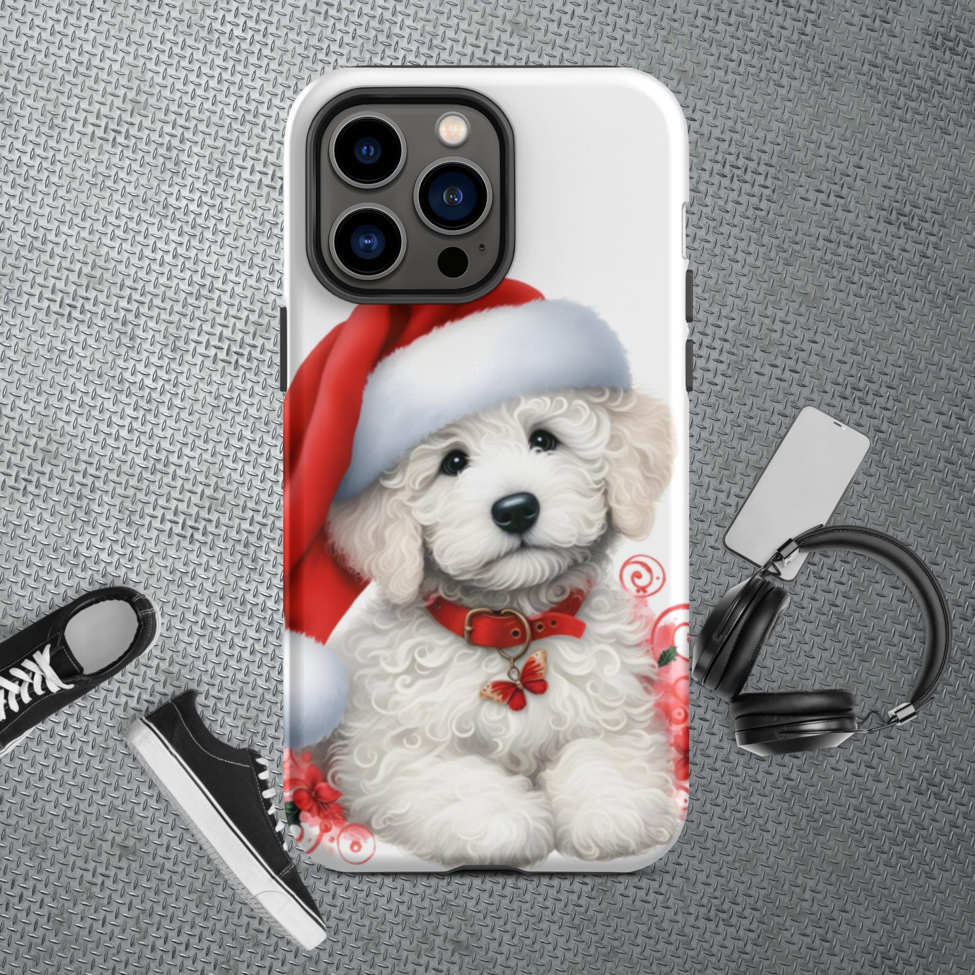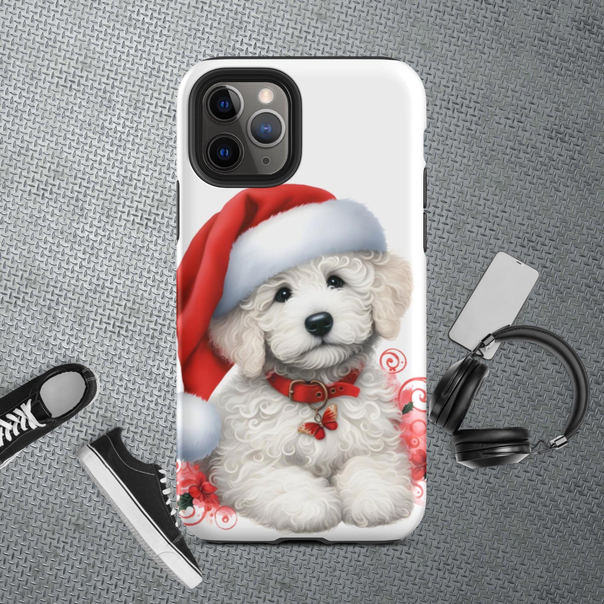 White Christmas Doodle Puppy Tough Case for iPhone®