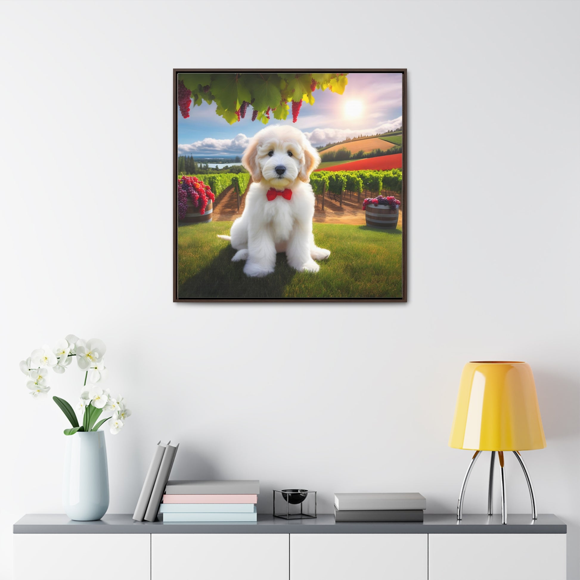 White Doodle at Winery - Wooden Gallery Canvas Picture - Square Frame - Nice!