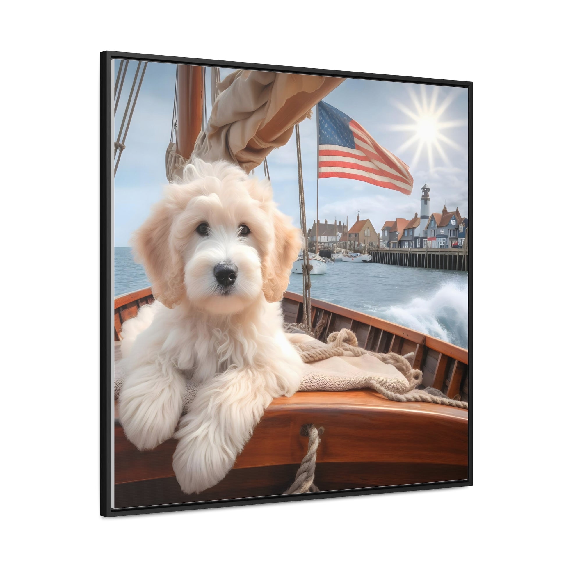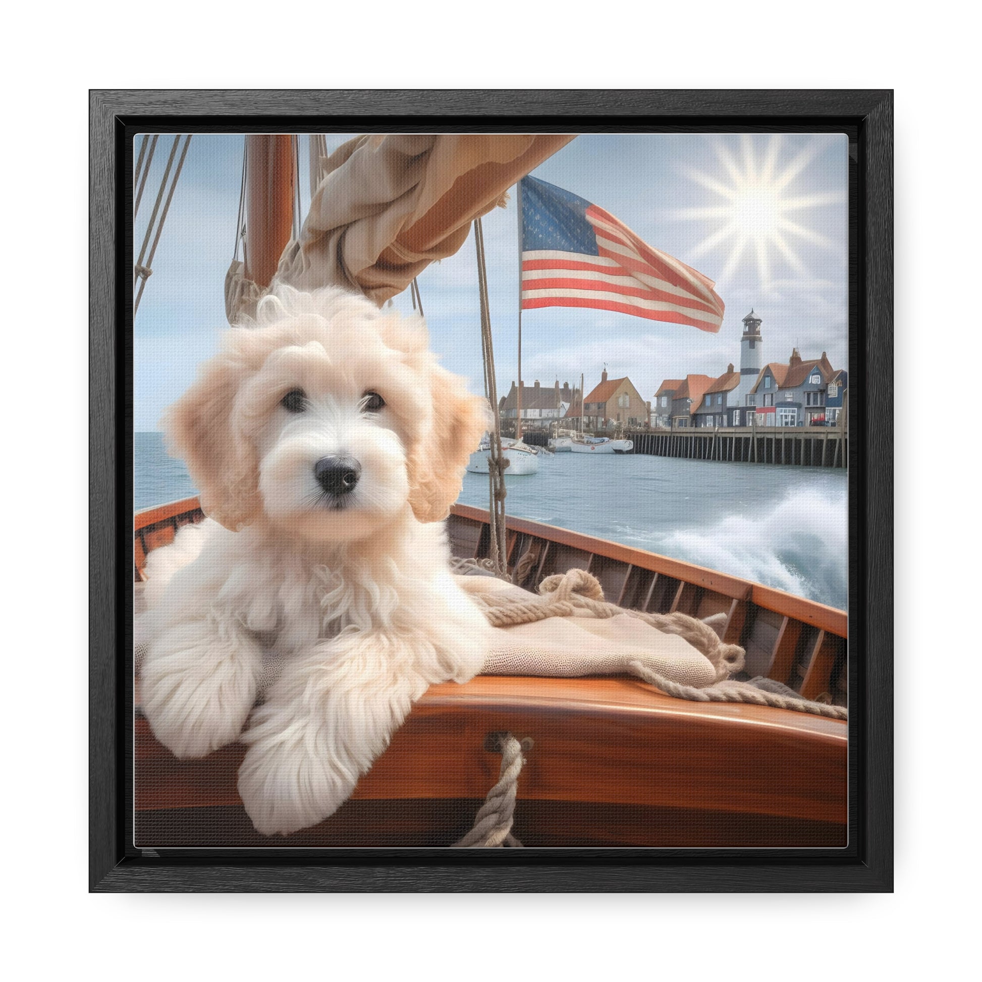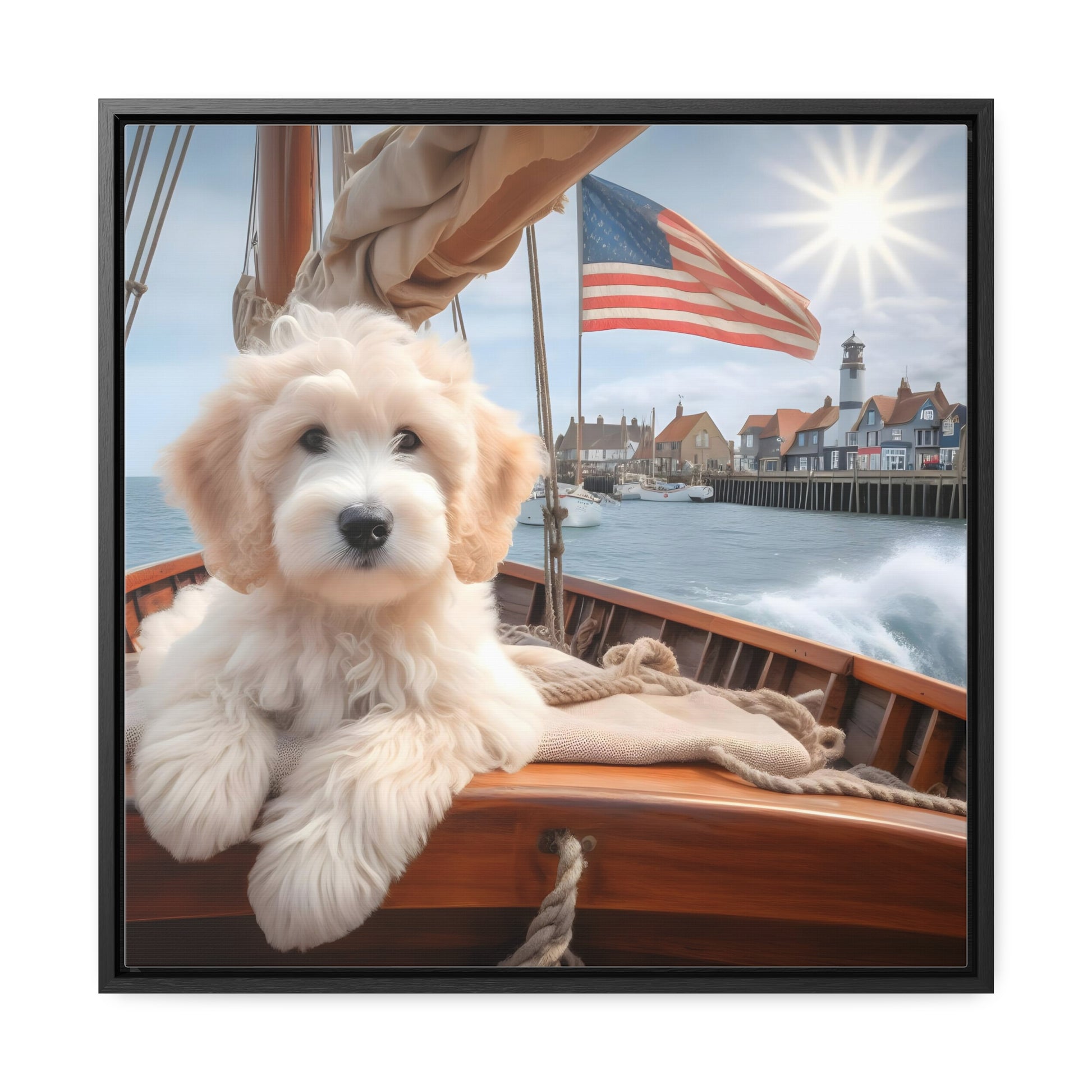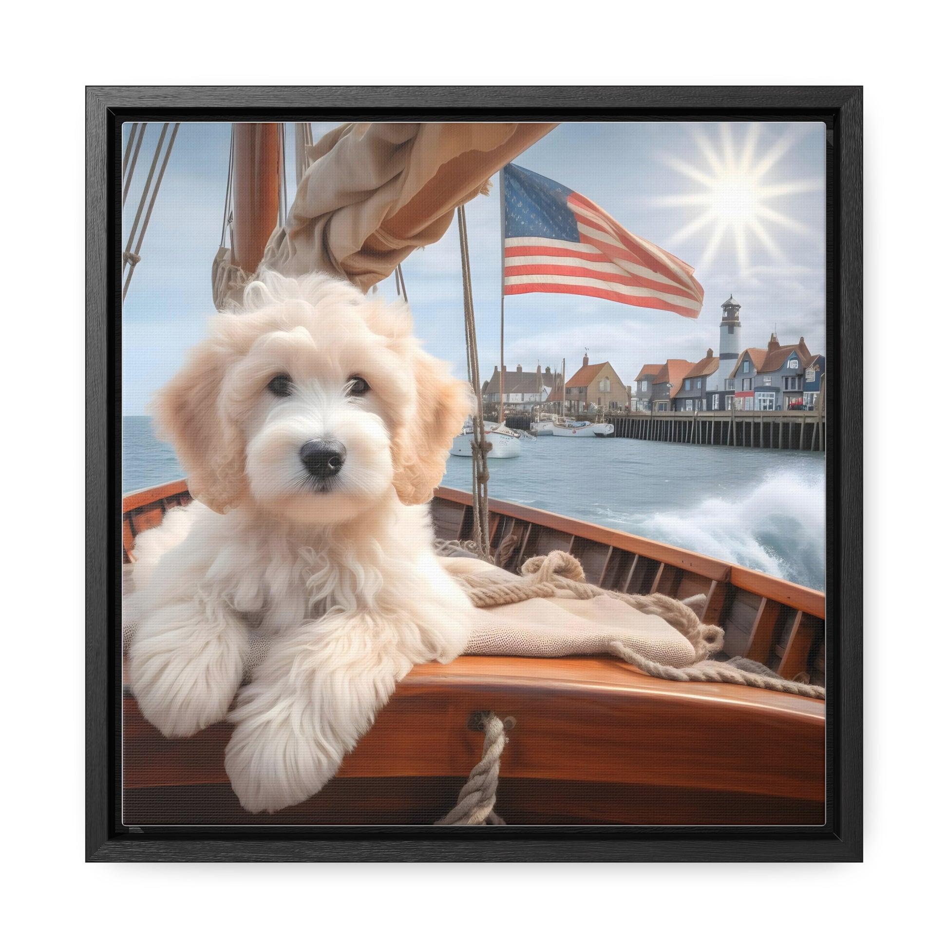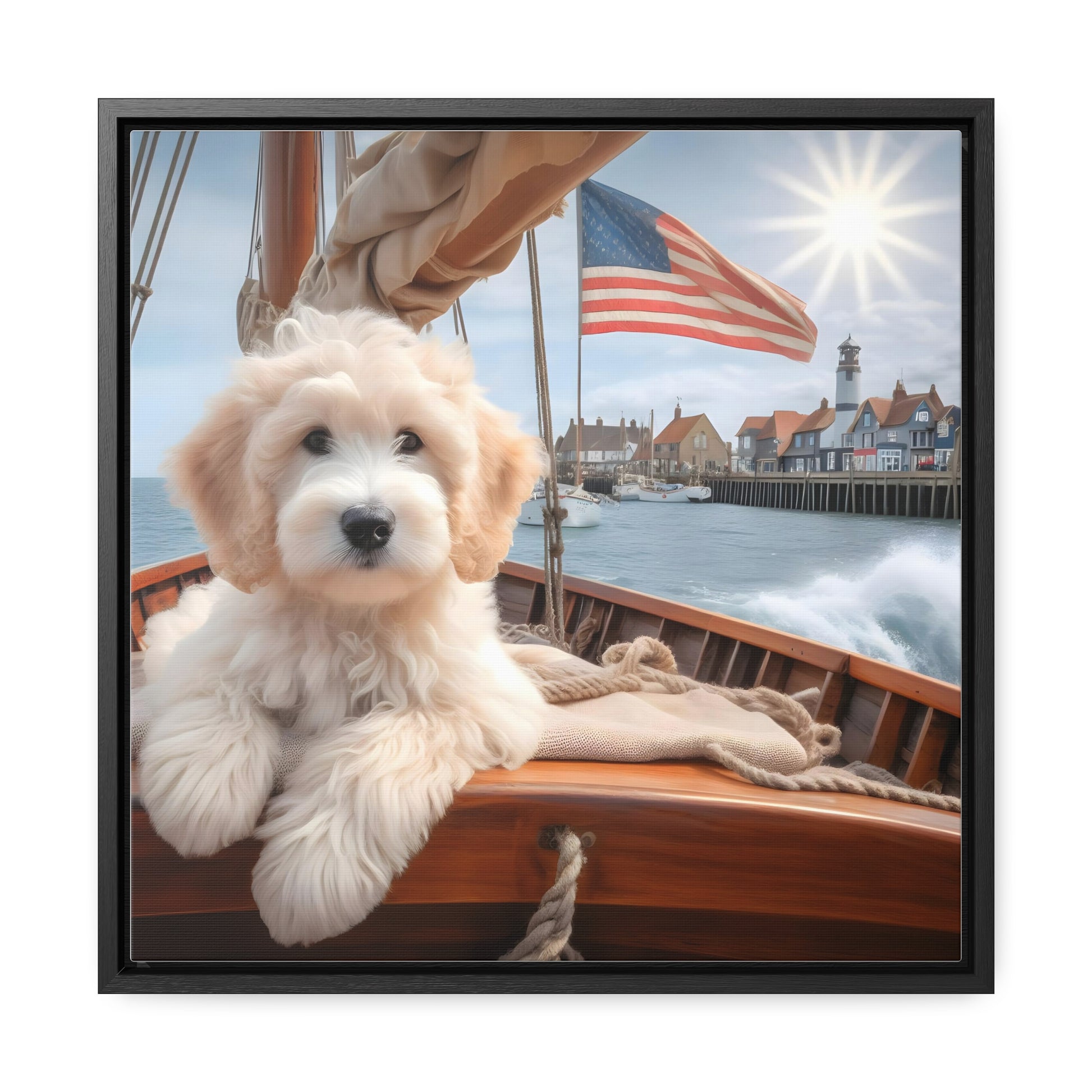 White Doodle on Sailboat - Wooden Gallery Canvas Picture - Square Frame - Nice!