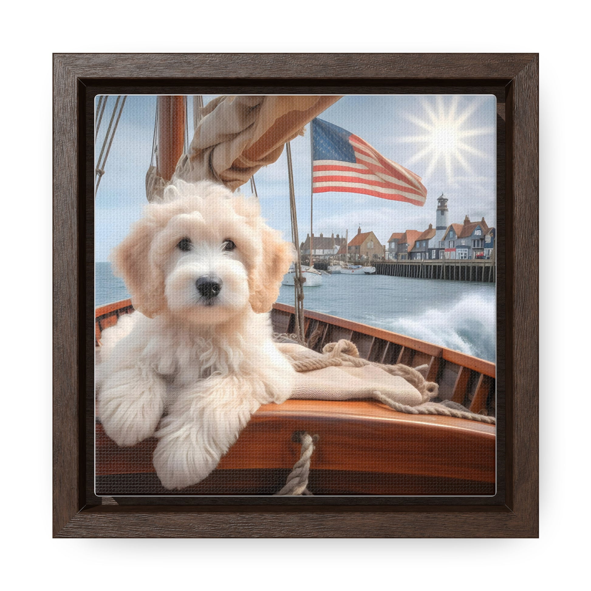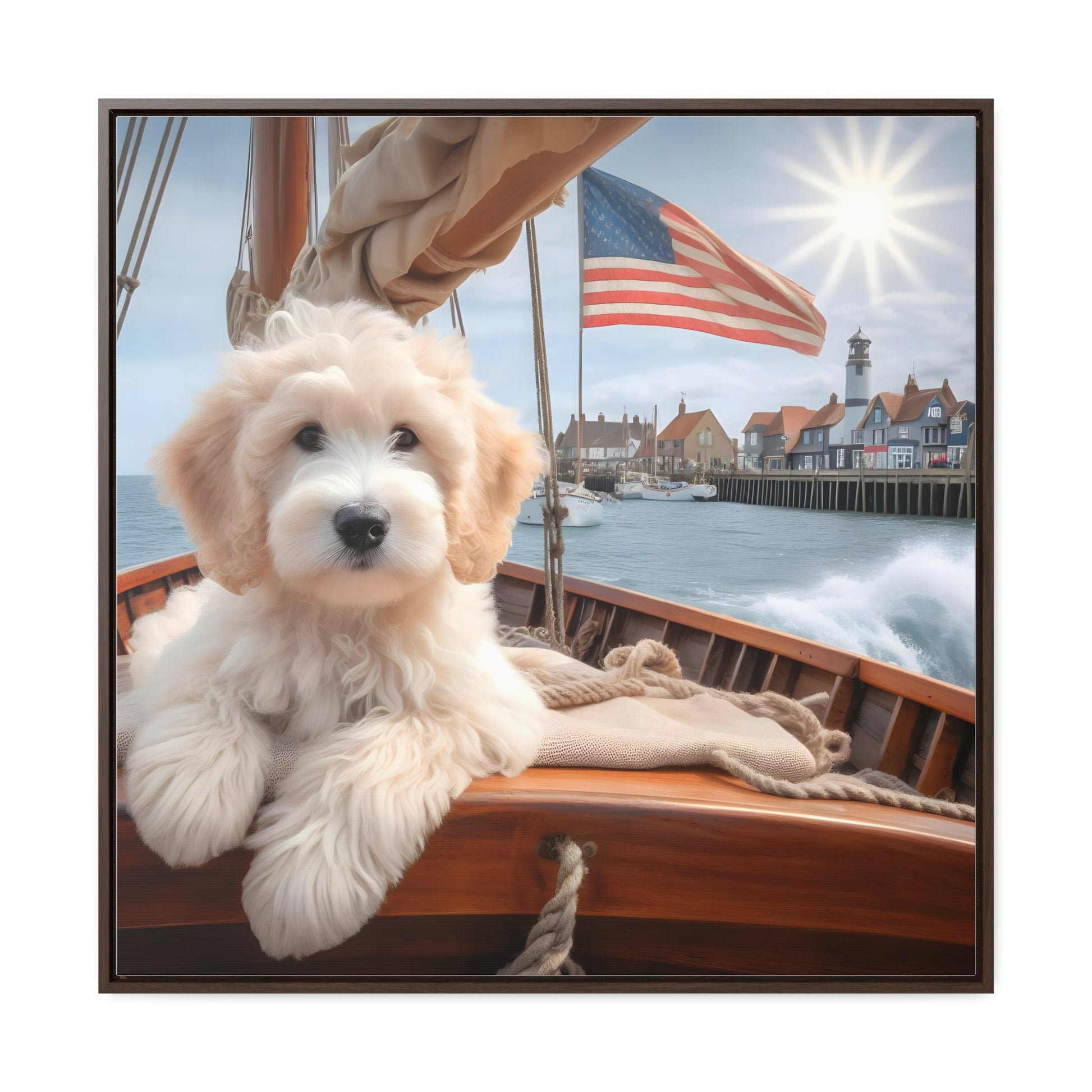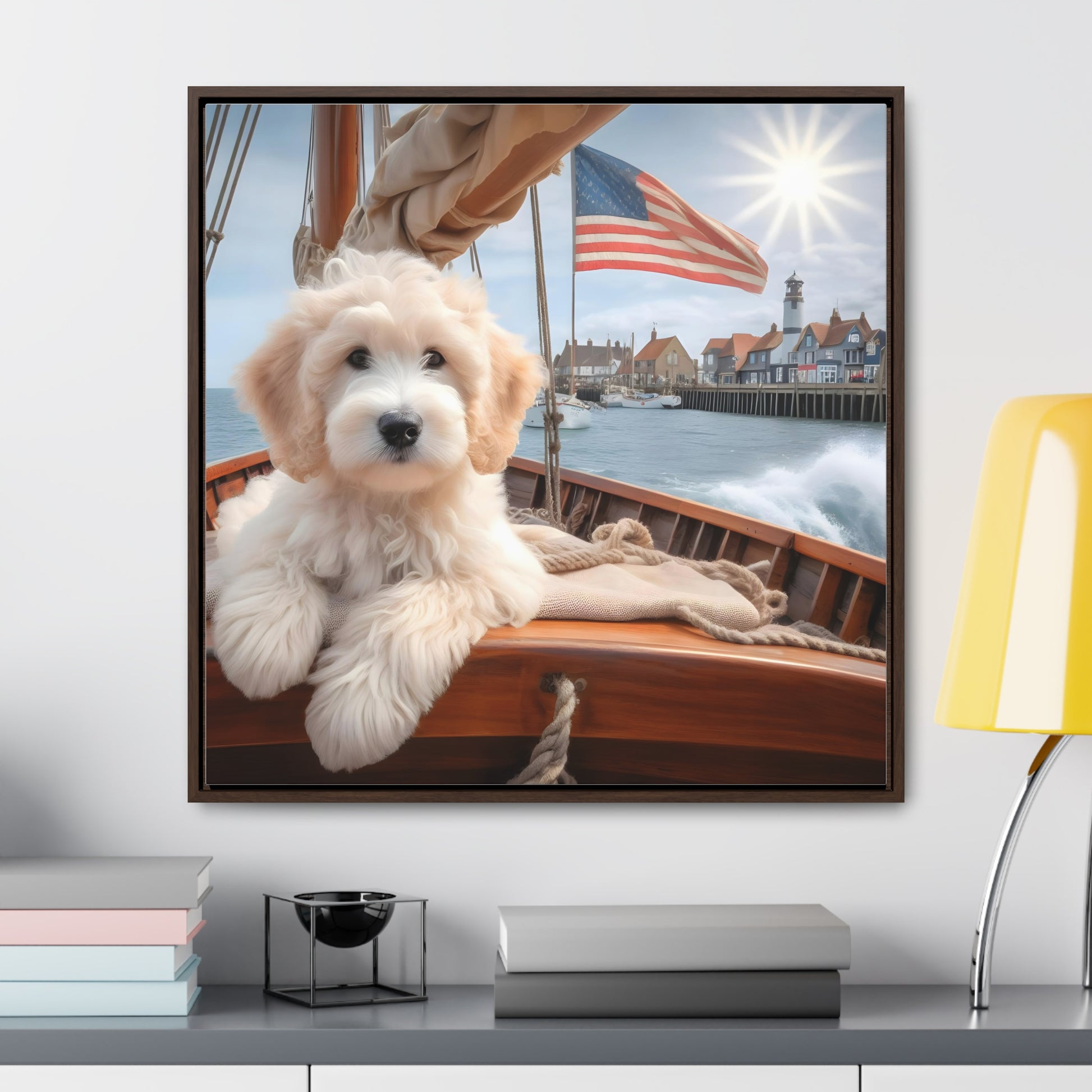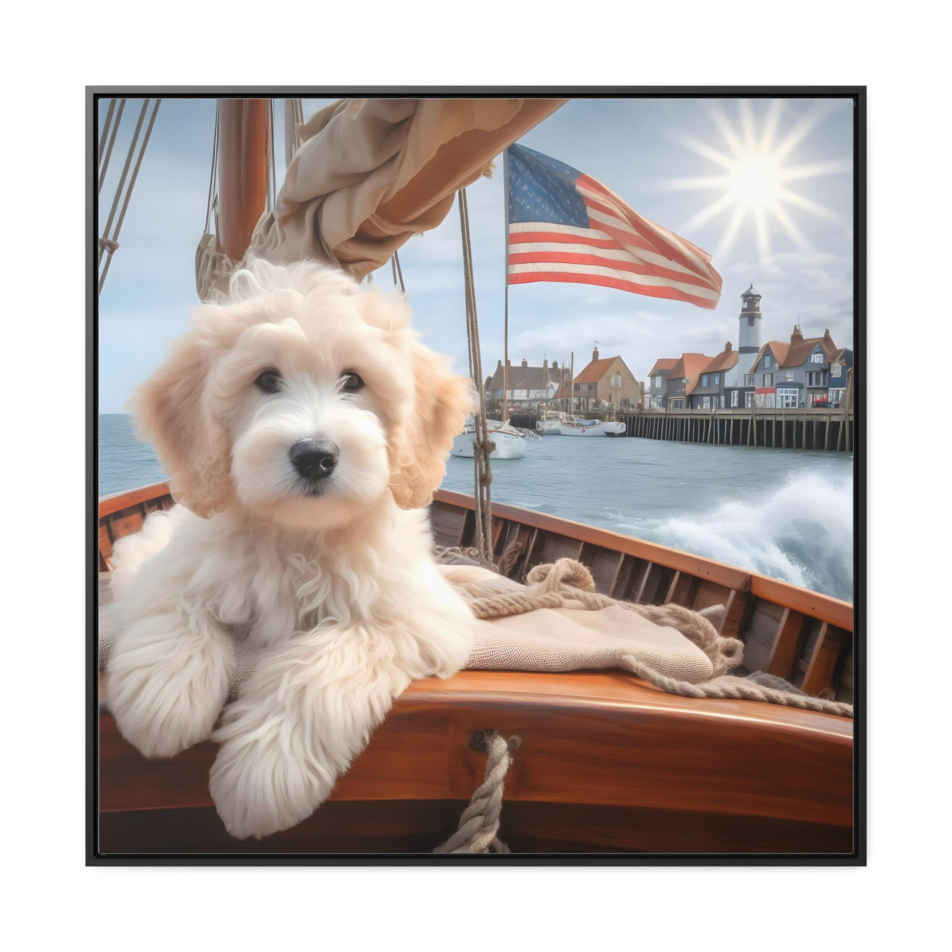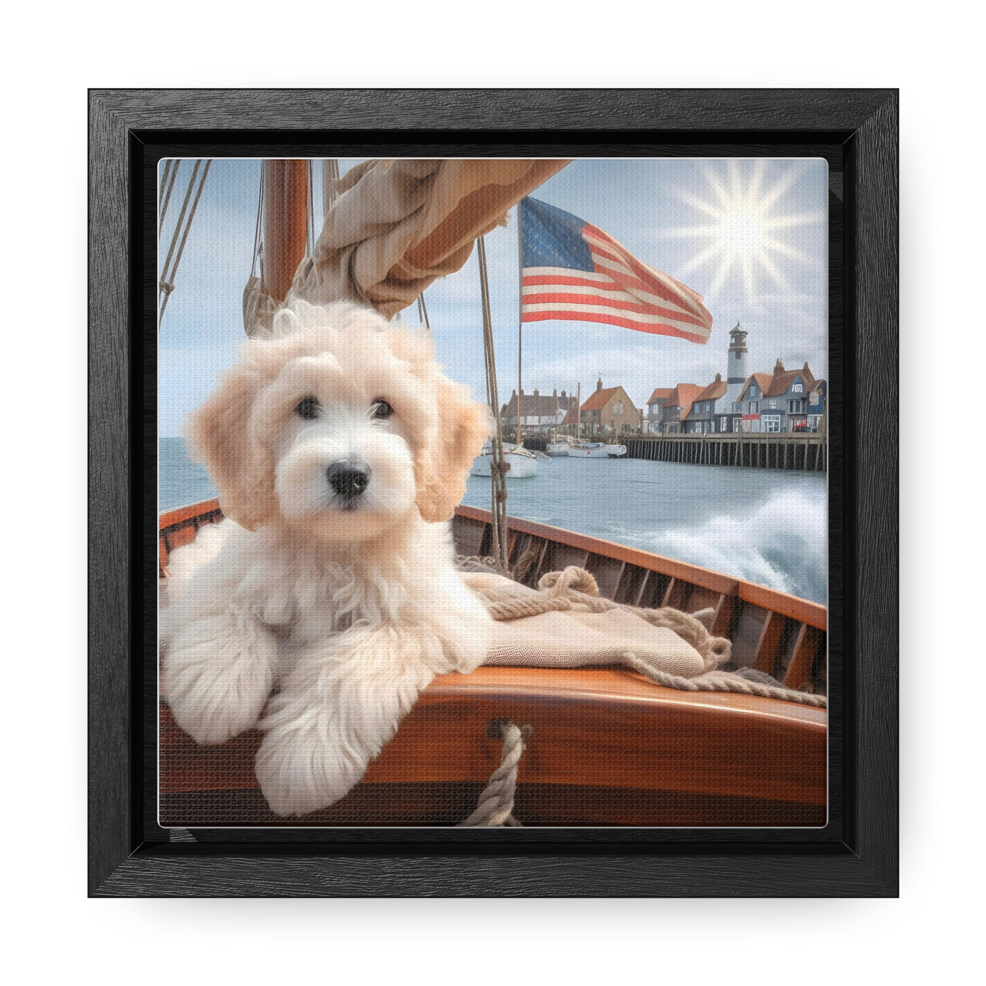 White Doodle on Sailboat - Wooden Gallery Canvas Picture - Square Frame - Nice!