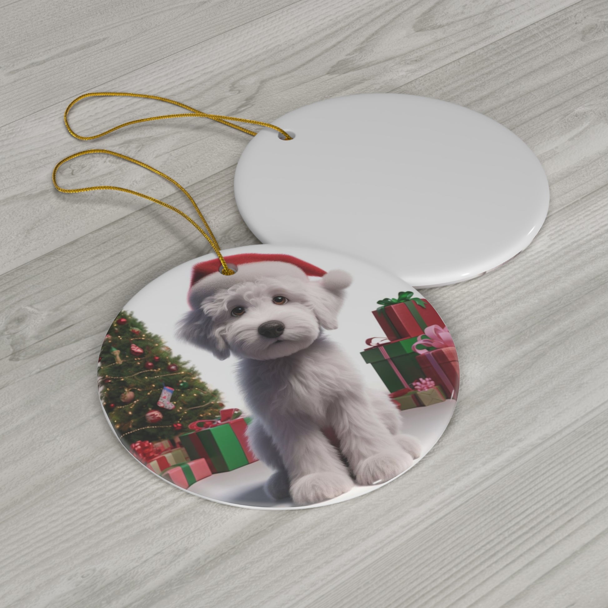 Christmas White Doodle Cartoon Inspired Ceramic Ornament