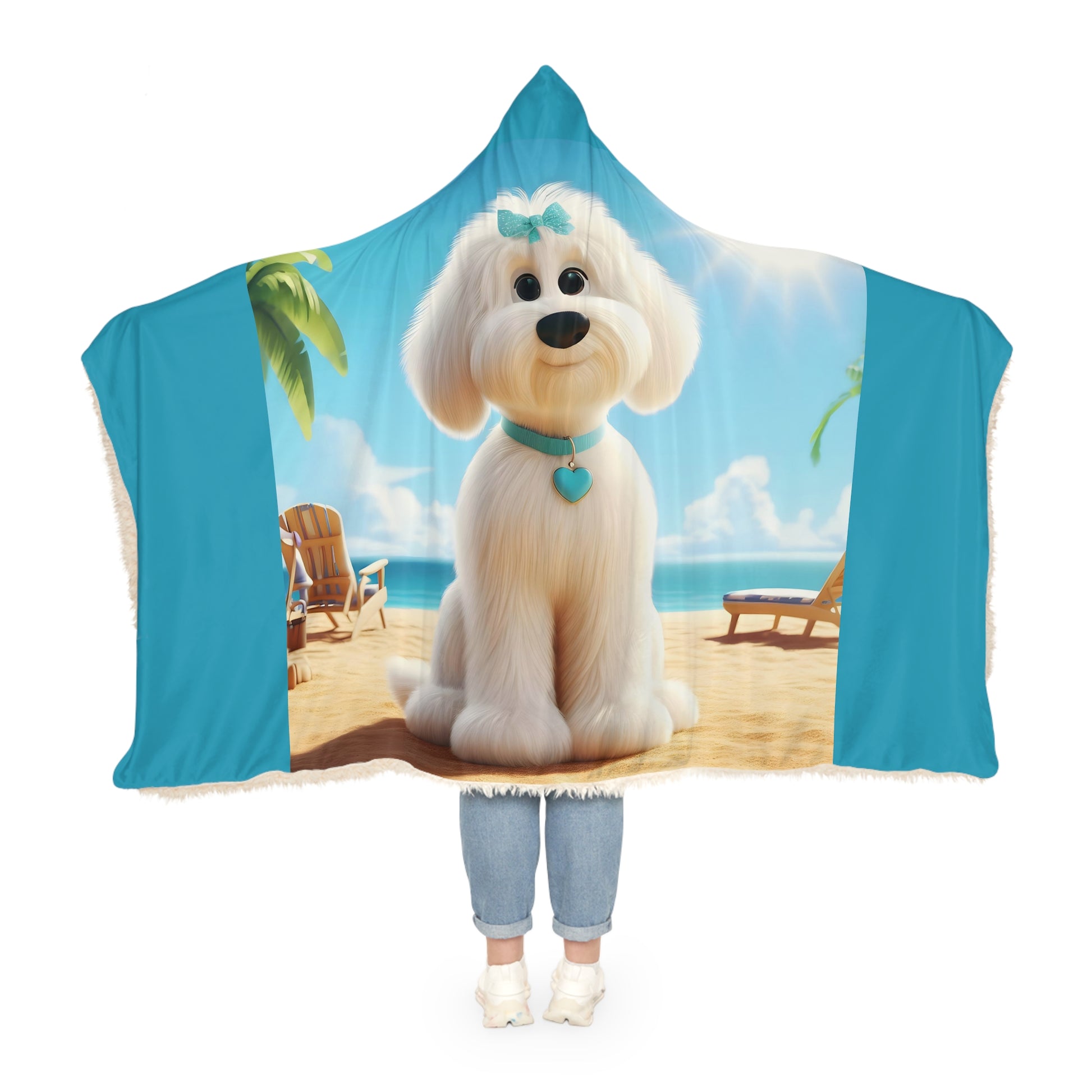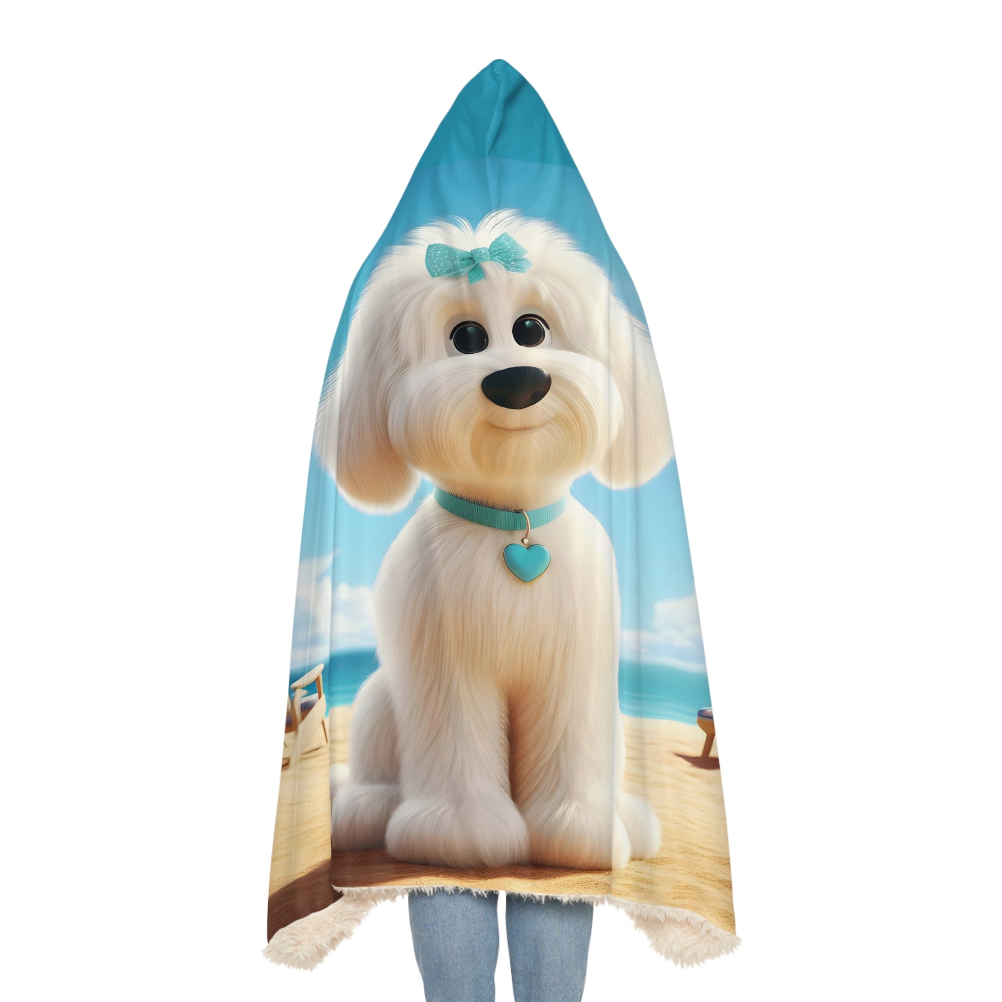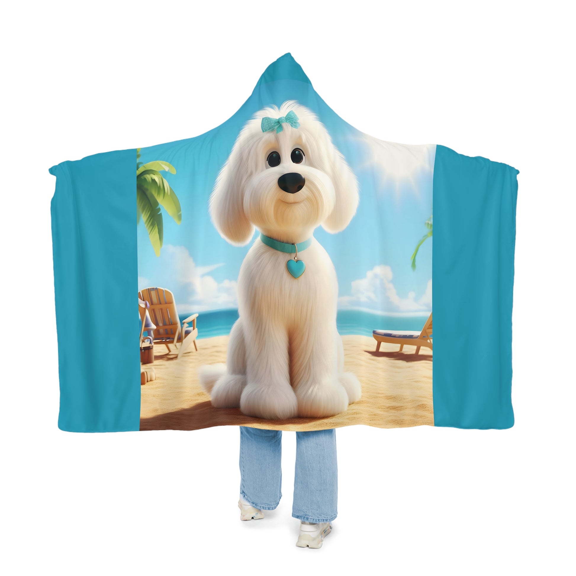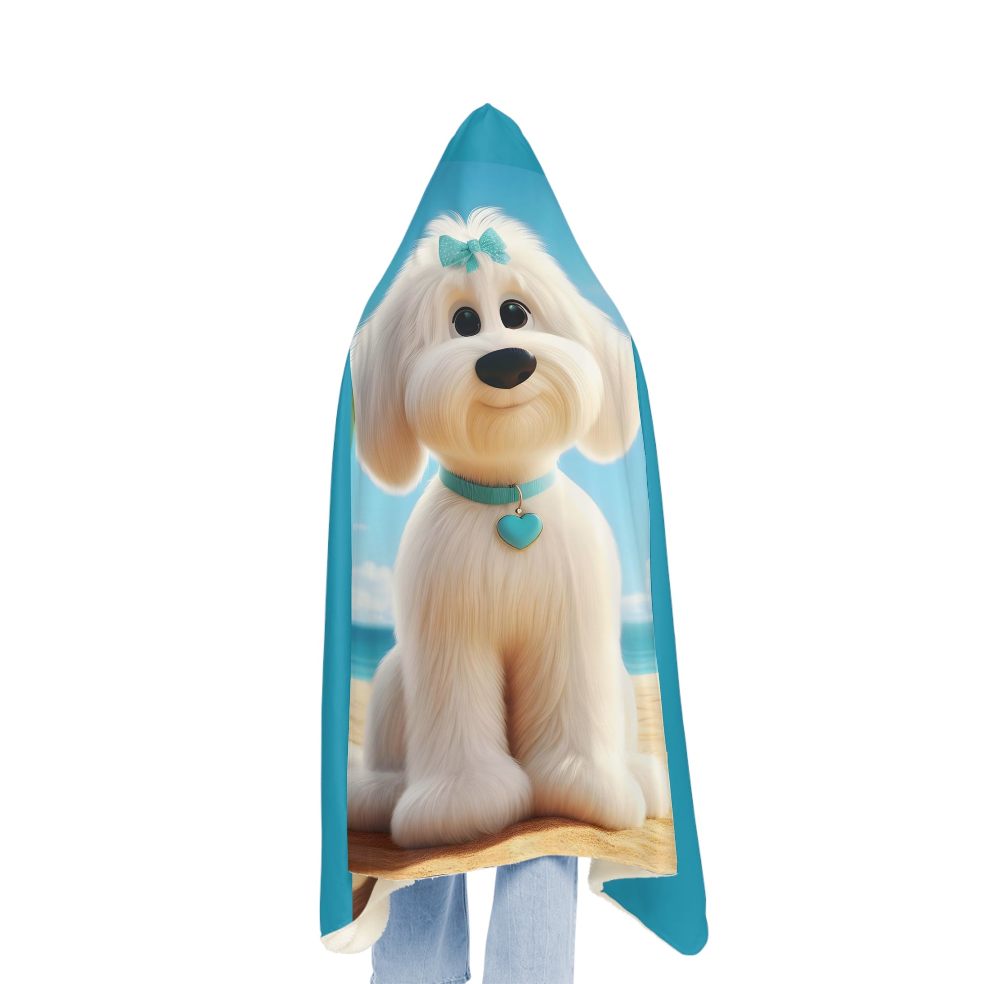 White Doodle Puppy Cartoon Inspired Hooded Snuggle Blanket