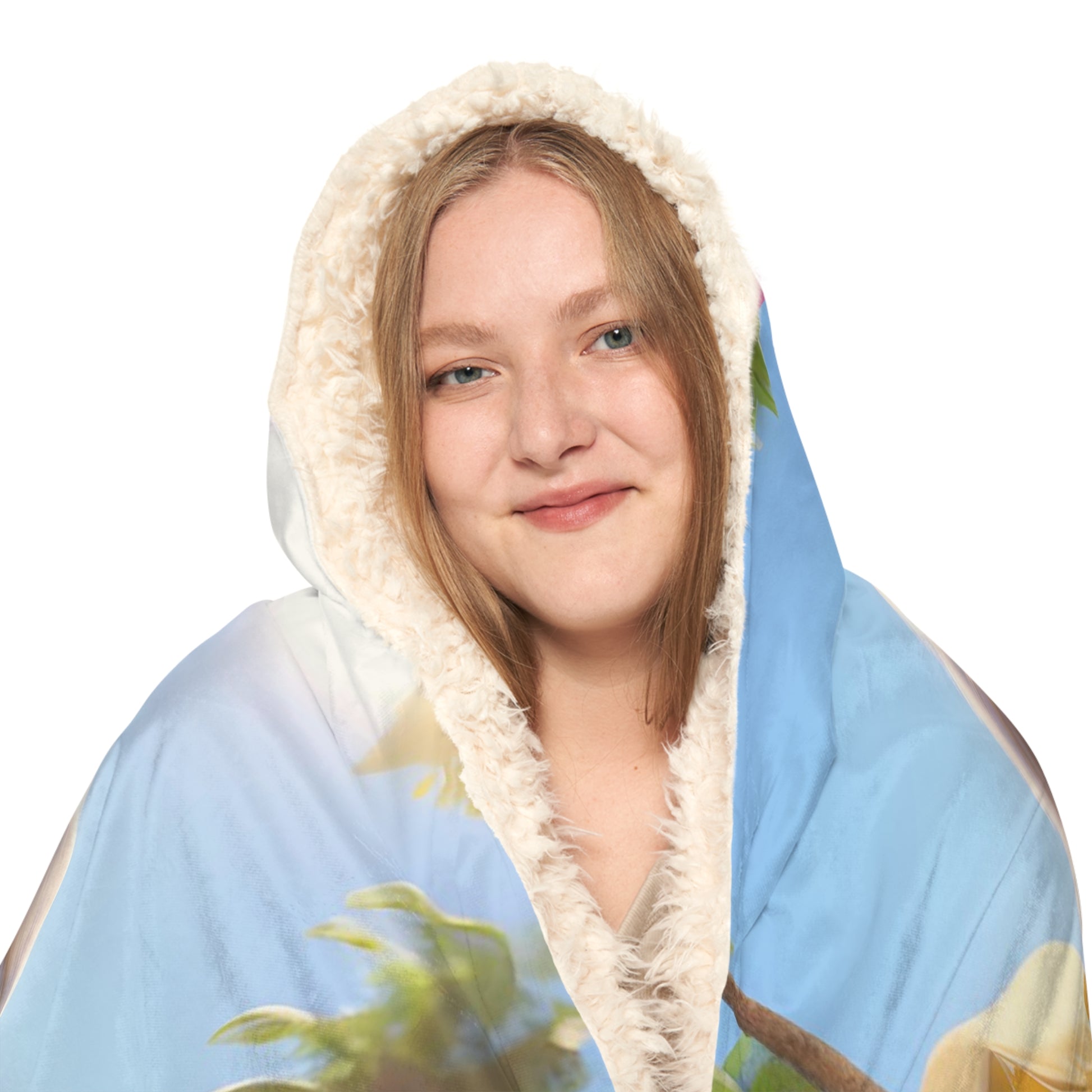 There's no need to get out of bed when you can wear a blanket all day. These incredibly comfy and soft hooded blankets are the perfect choice for cozy days at home. The 100% polyester fabric ensures durability through regular wear. We'll print your original designs onto the front of the blanket in vibrant colors and high resolution. Choose between the two inner lining options – microfleece or sherpa.