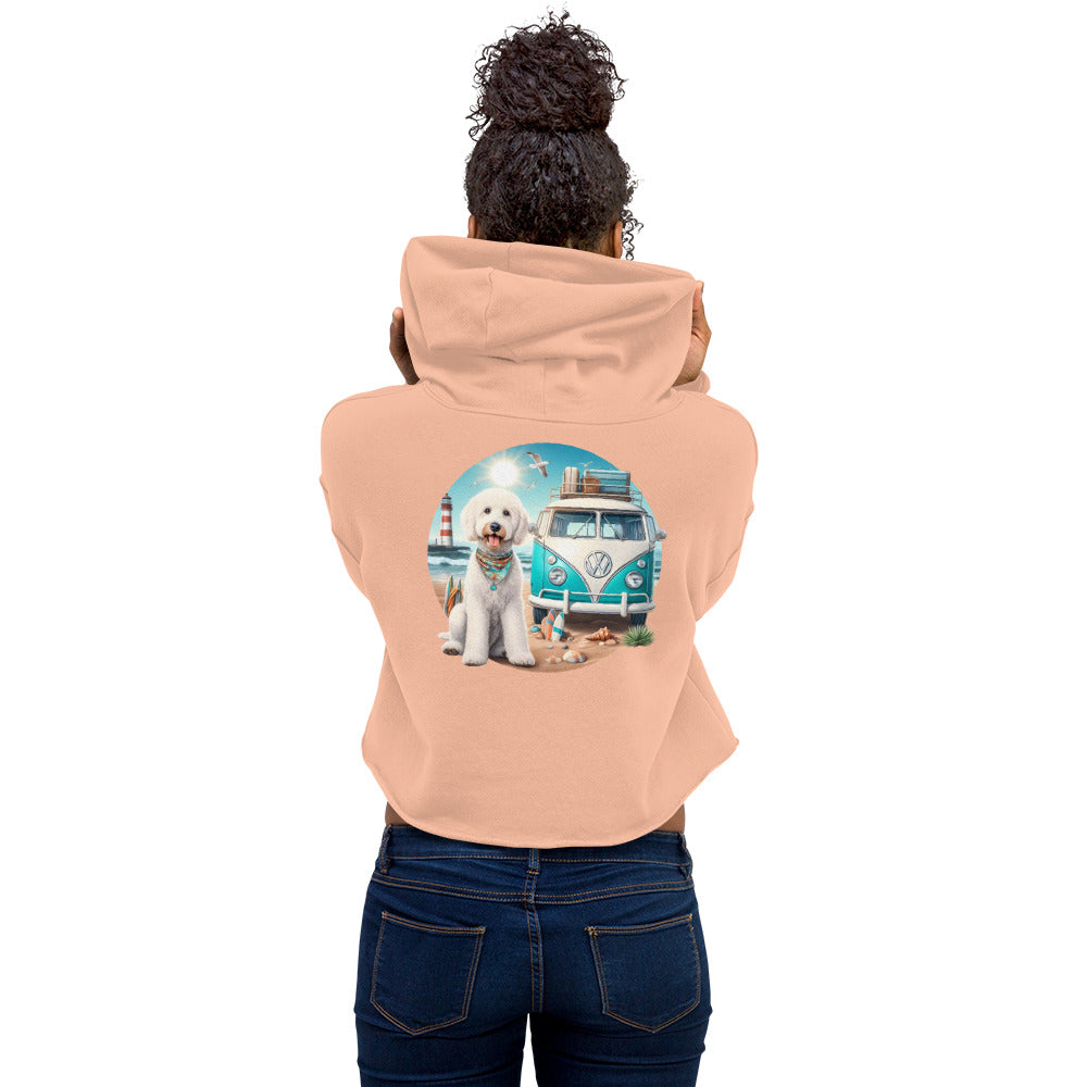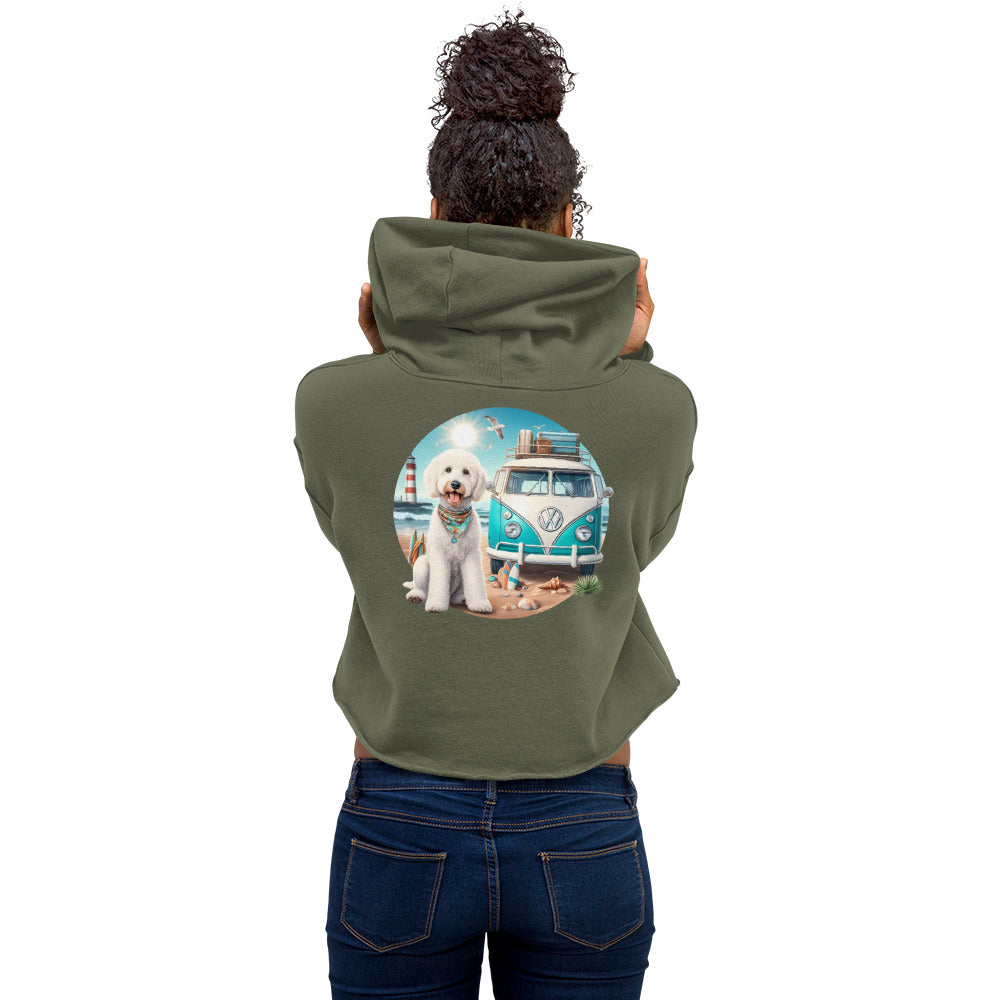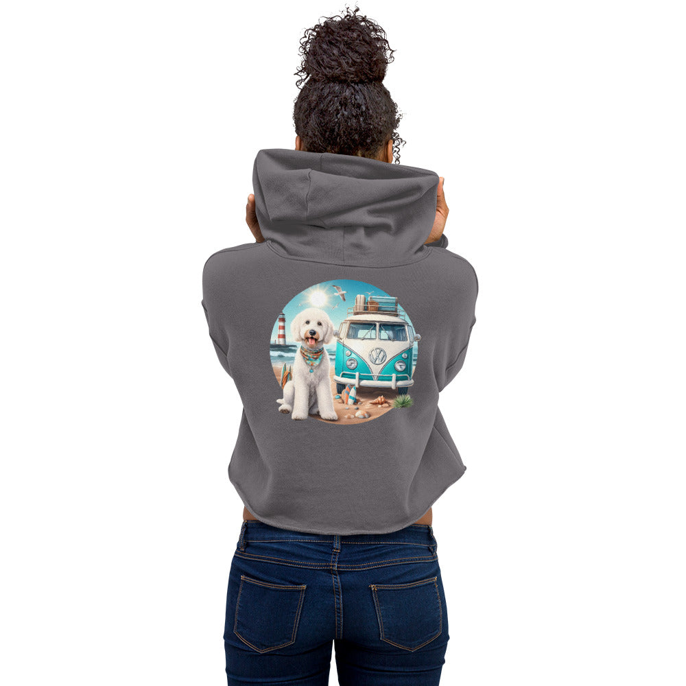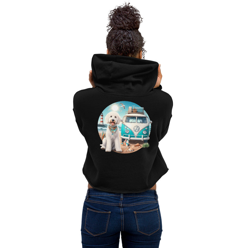 White Doodle VW Bus Crop Hoodie