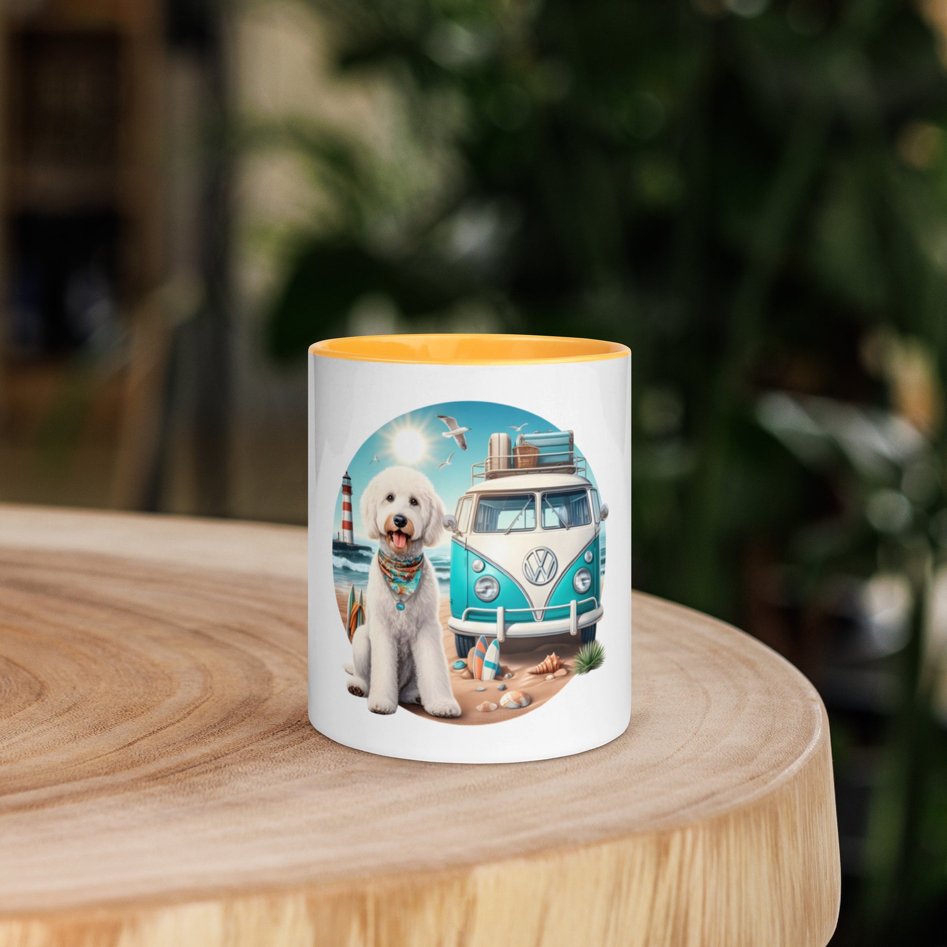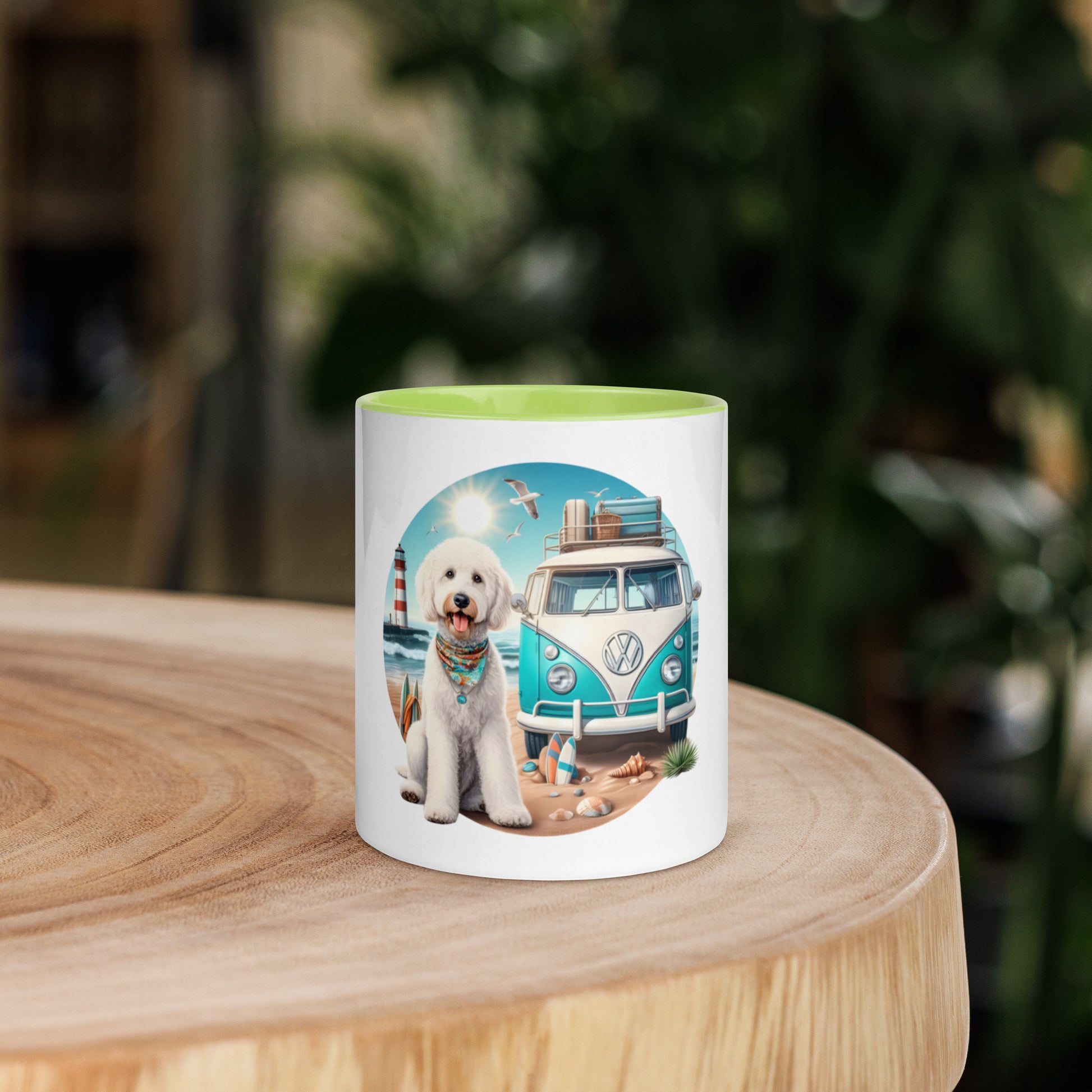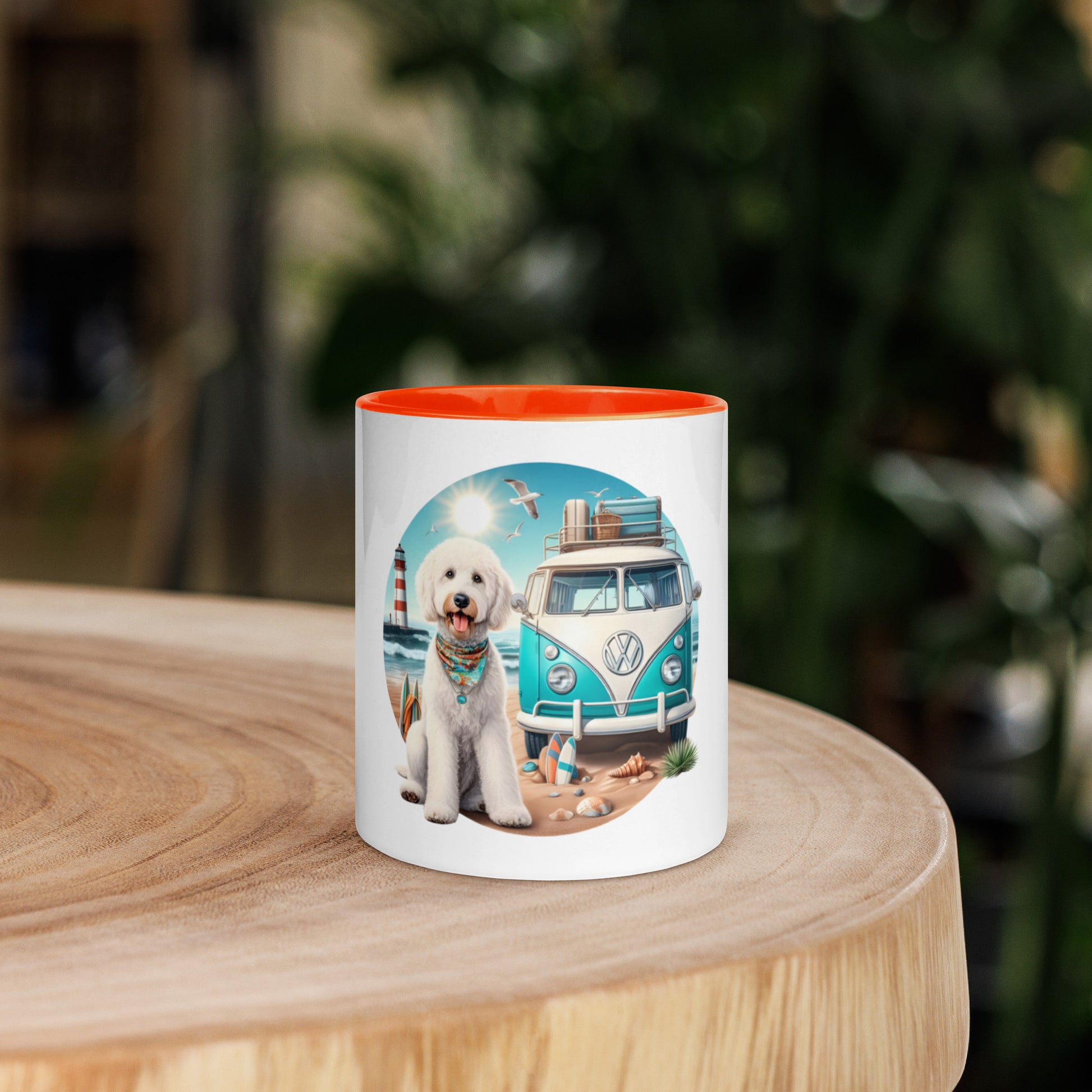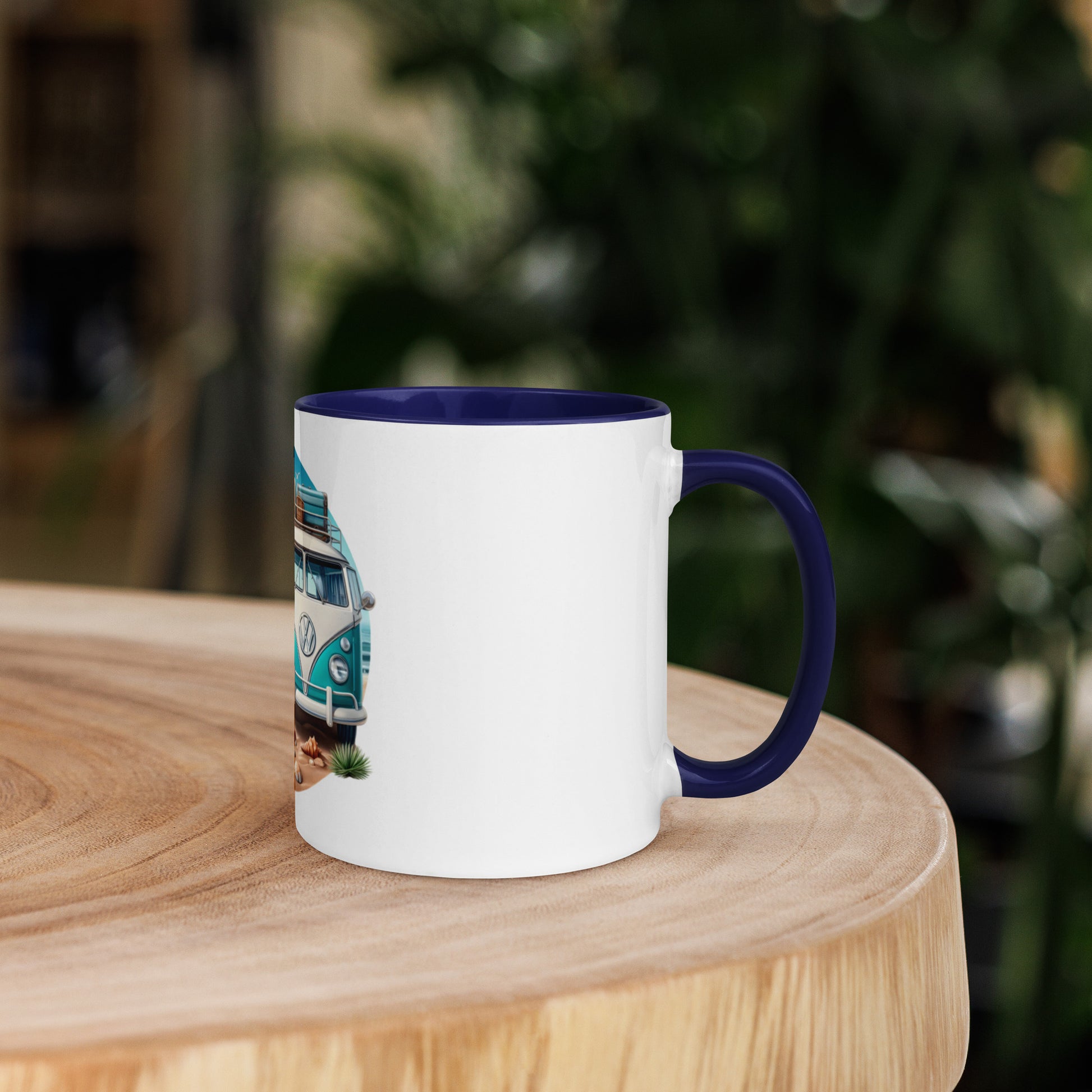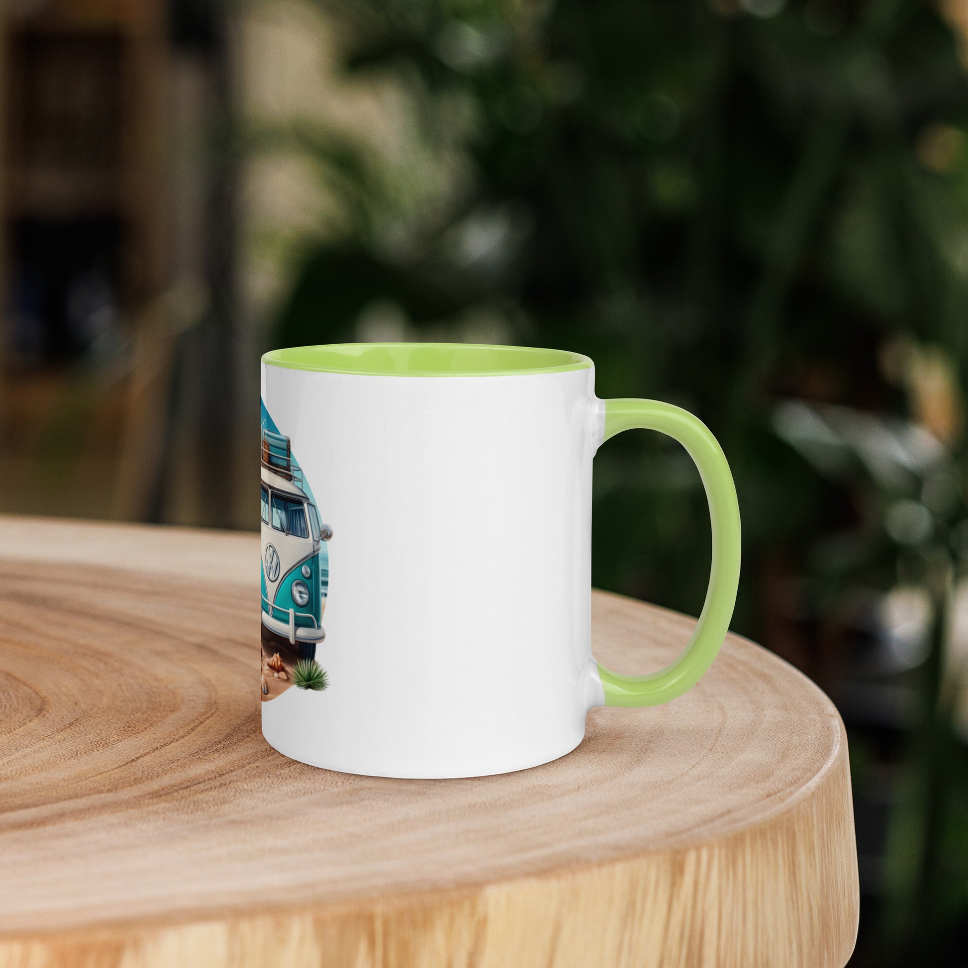 White Doodle VW Bus Mug with Color Inside